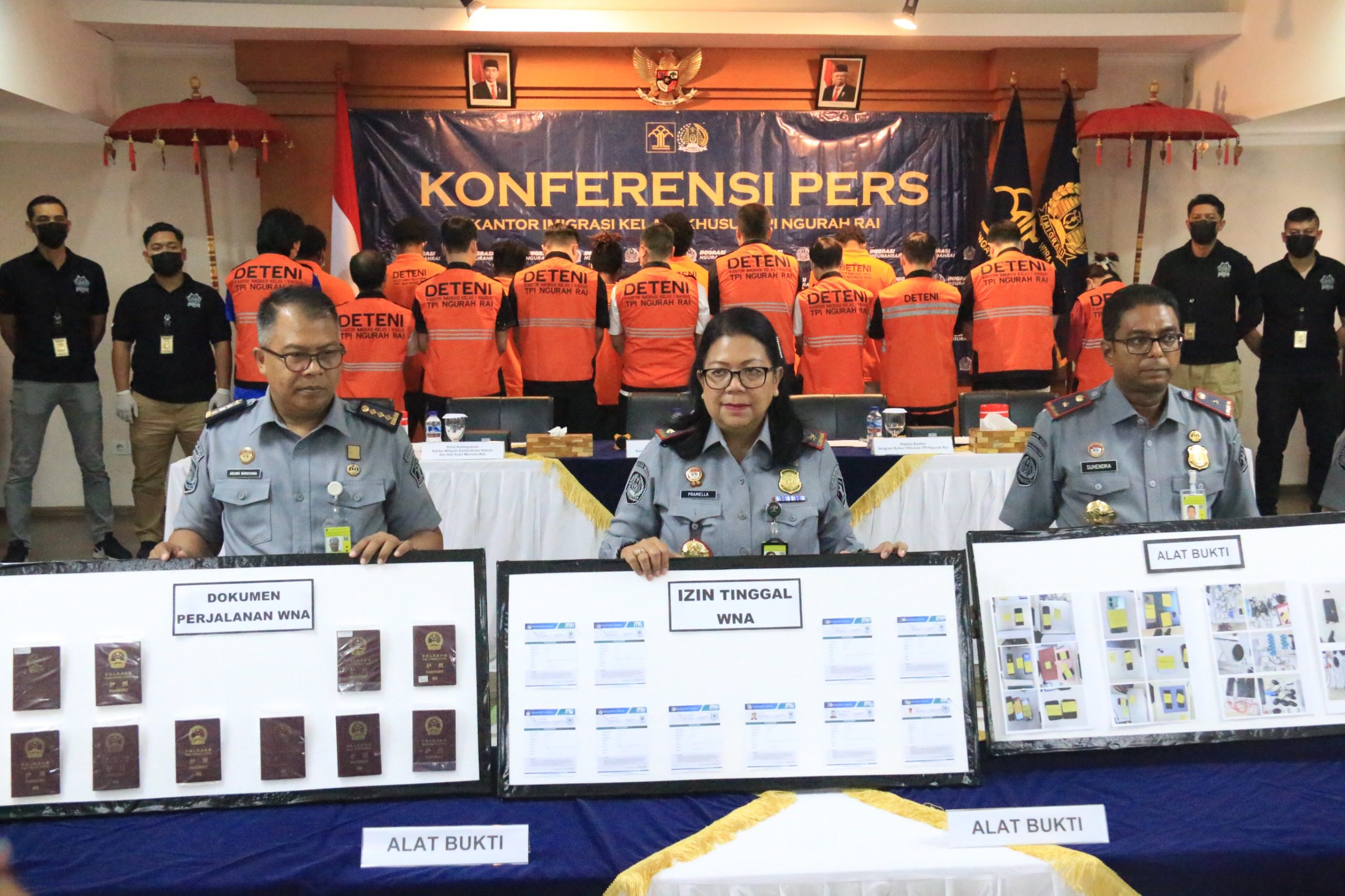 “Berdasarkan hasil pemeriksaan, kedelapan WNA tersebut telah melanggar pasal 71 huruf b Undang-Undang Nomor 6 Tahun 2011 tentang Keimigrasian yakni Setiap orang asing yang berada di wilayah Indonesia wajib memperlihatkan dan menyerahkan dokumen perjalanan atau izin tinggal yang dimilikinya apabila diminta oleh pejabat imigrasi yang bertugas dalam rangka pengawasan keimigrasian,” ungkap Kepala Kanwil Kemenkumham Bali, Pramella Y. Pasaribu pada Konferensi Pers yang dilaksanakan bertempat di Aula, Kanim Ngurah Rai pada Senin (22/7).