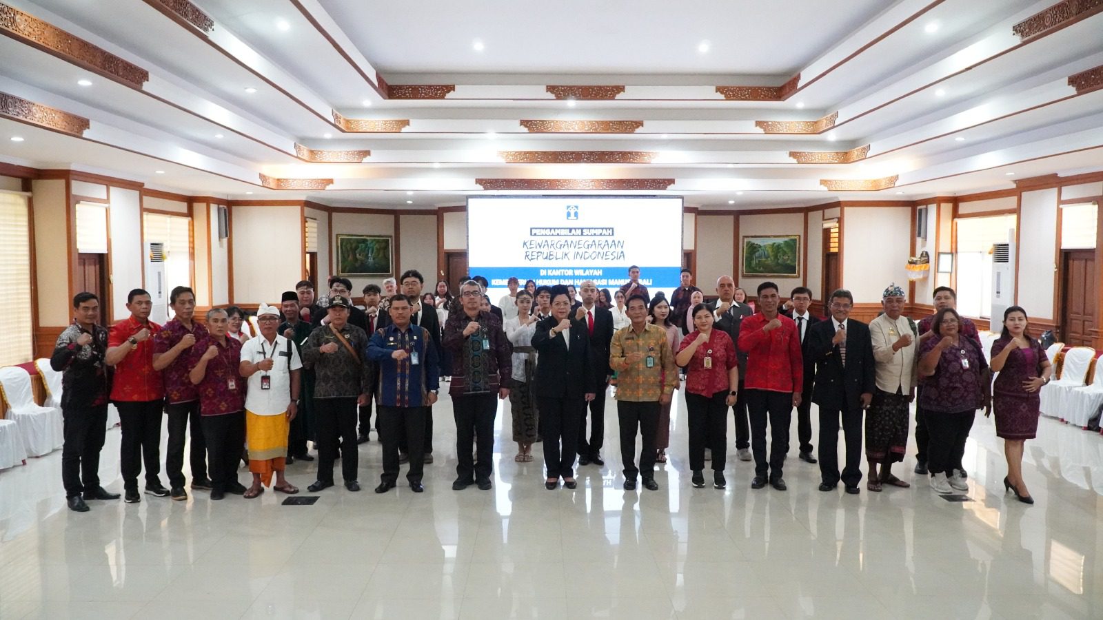 BALI,locusdelictinews – Sebanyak 12 orang resmi diambil sumpahnya sebagai Warga Negara Indonesia (WNI) dalam upacara yang dipimpin oleh Kepala Kantor Wilayah Kementerian Hukum dan HAM (Kemenkumham) Bali, Pramella Yunidar Pasaribu, bertempat di Ruang Dharmawangsa, Selasa (06/08). Upacara ini menandai momen penting bagi para individu yang berasal dari berbagai latar belakang untuk secara resmi menjadi bagian dari bangsa Indonesia.