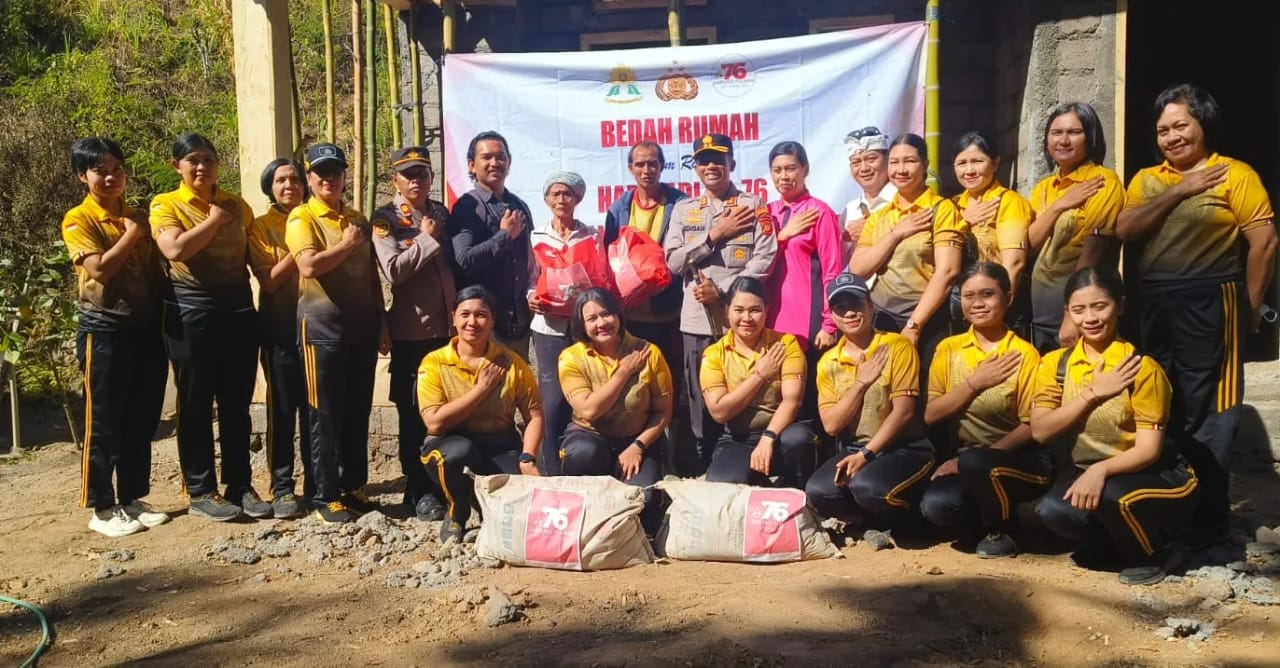 dalam rangka Hari Jadi Polwan Republik Indonesia yang ke 76 yakni melaksanakan giat Bedah Rumah milik warga tidak mampu Milik Ni Nengah Jani, 65, di Banjar Dinas Daya Desa Ban, Kubu Karangasem, Senin (19/8)