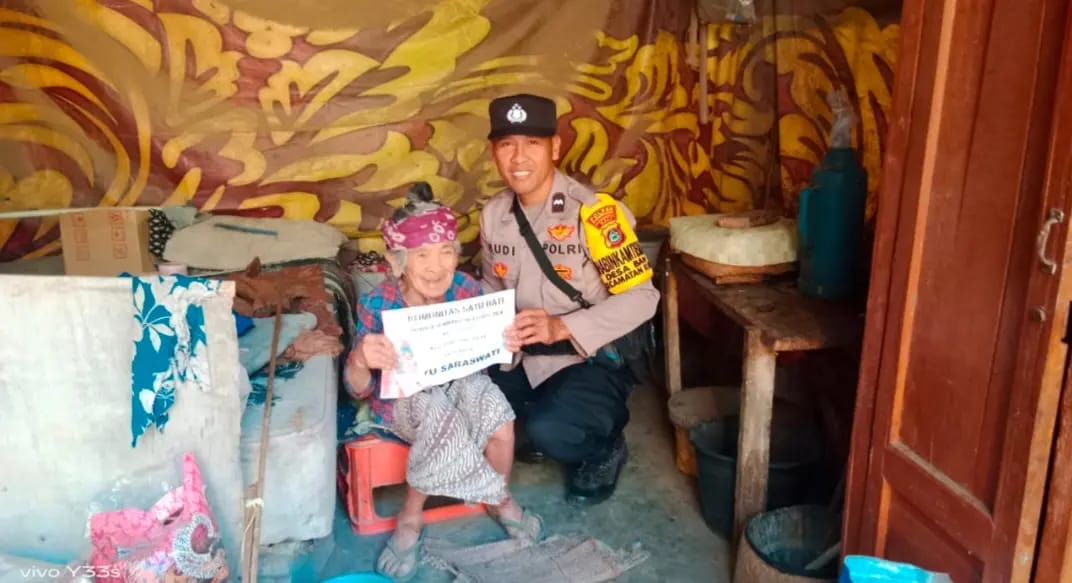 Dalam kesempatan tersebut Bripka Budi Artana juga menyampaikan pesan kepada Ni Wayan Kisel agar tetap semangat dan selalu menjaga kesehatannya.