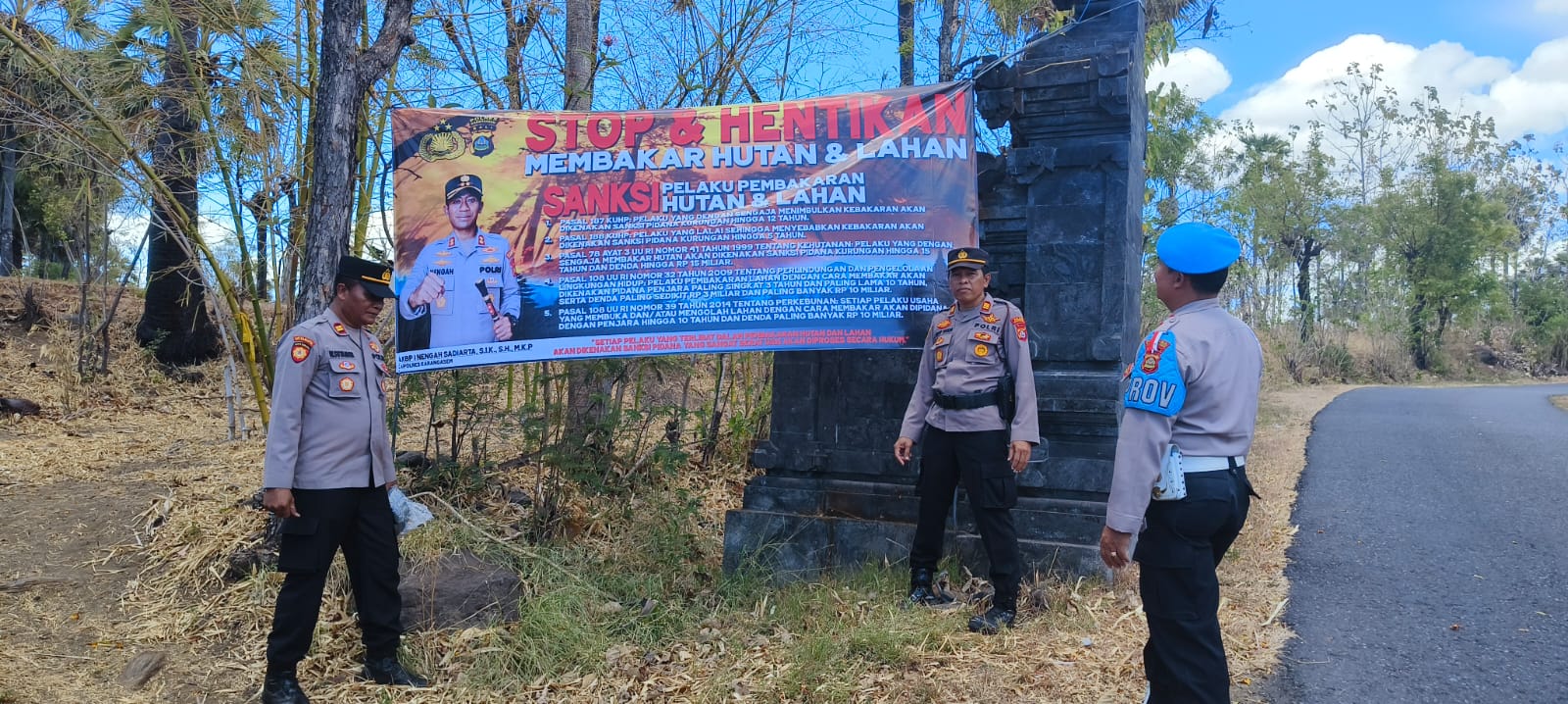 BALI,locusdelictinews-Polsek Kubu, Berbagai upaya yang telah dilalukan Kapolsek Kubu AKP. I Gusti Agung Bagus Suteja, SIP. MH Dalam upaya mencegah dan meminimalisir kebakaran hutan dan lahan diwilayah Hukum Kecamatan Kubu Karangasem, salah satu melalui pemasangan Spanduk Himbauan dan Sansi Hukum Bagi pelaku Kebakaran Hutan dan lahan.