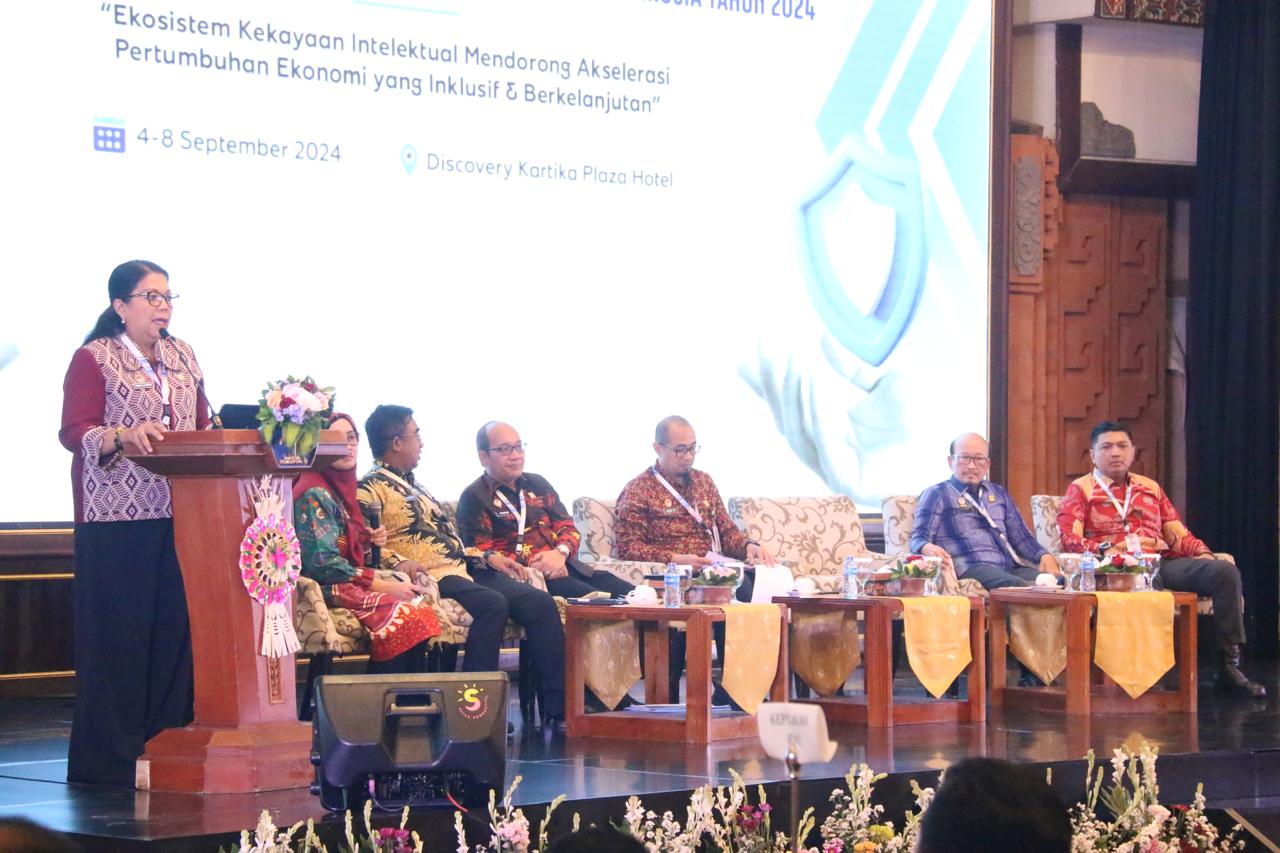 Bali,locusdelictinews – Kepala Kantor Wilayah Kementeriana Hukum dan HAM Bali, Pramella Yunidar Pasaribu memaparkan capaian gemilang perlindungan Kekayaan Intelektual di Provinsi Bali selama tahun 2024, hal ini disampaikannya pada Hari Kedua Rapat Koordinasi Teknis Kinerja Program Penegakan dan Pelayanan Hukum Bidang Kekayaan Intelektual Tahun 2024, bertempat di Ballroom Discovery Kartika Plaza Hotel, Bali pada Kamis (5/9).