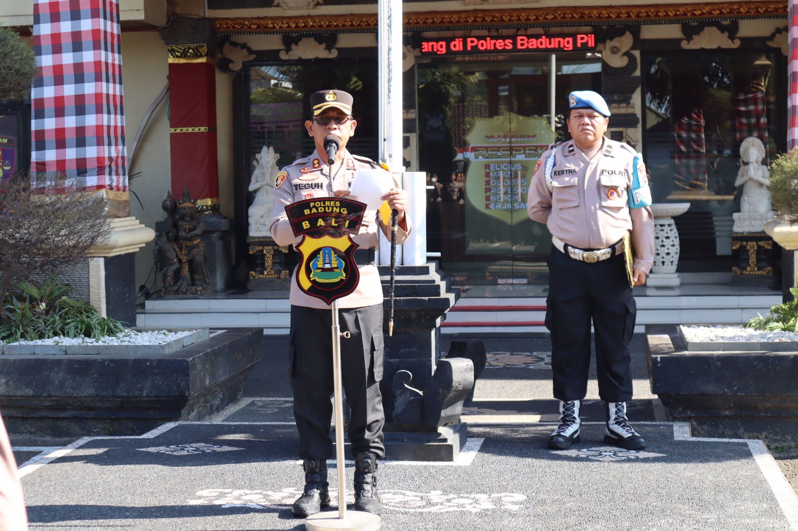 Bali,locusdelictimews – Kepala Kepolisian Resor Badung AKBP Teguh Priyo Wasono, SIK memimpin apel pagi yang dirangkaikan dengan apel jam pimpinan yang dilaksanakan di Lapangan Apel Polres Badung Jl. Kebo Iwa No. 1 Mengwitani Kecamatan Mengwi Kabupaten Badung, Bali Selasa, (17/09/2024) pagi.