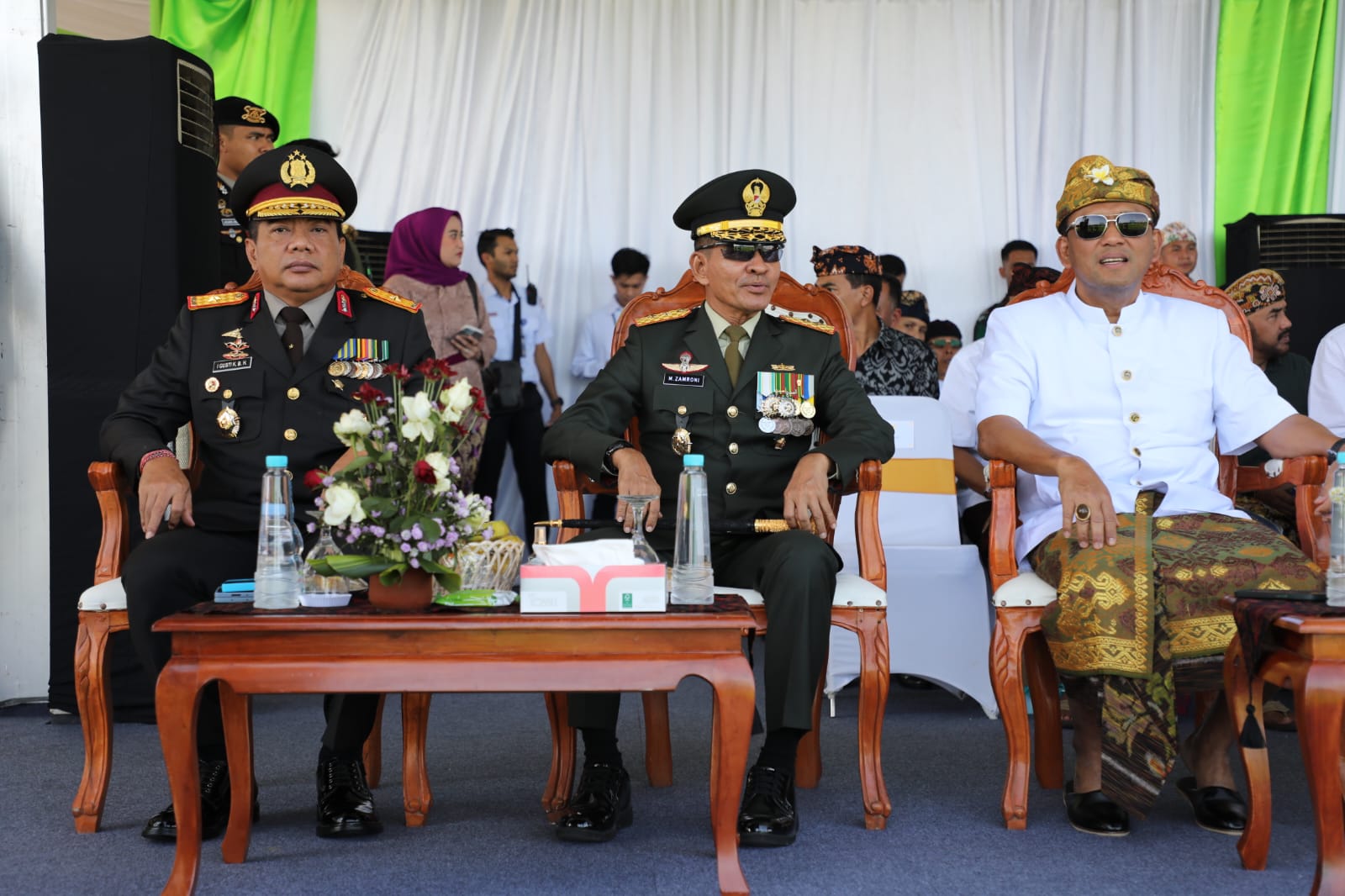 Usai mengikuti upacara peringatan Harhubnas, Pangdam IX/Udayana bersama Wakapolda Bali mendapat kesempatan untuk menyerahkan bingkisan berisi alat tulis kepada perwakilan siswa. (BINA-PID)