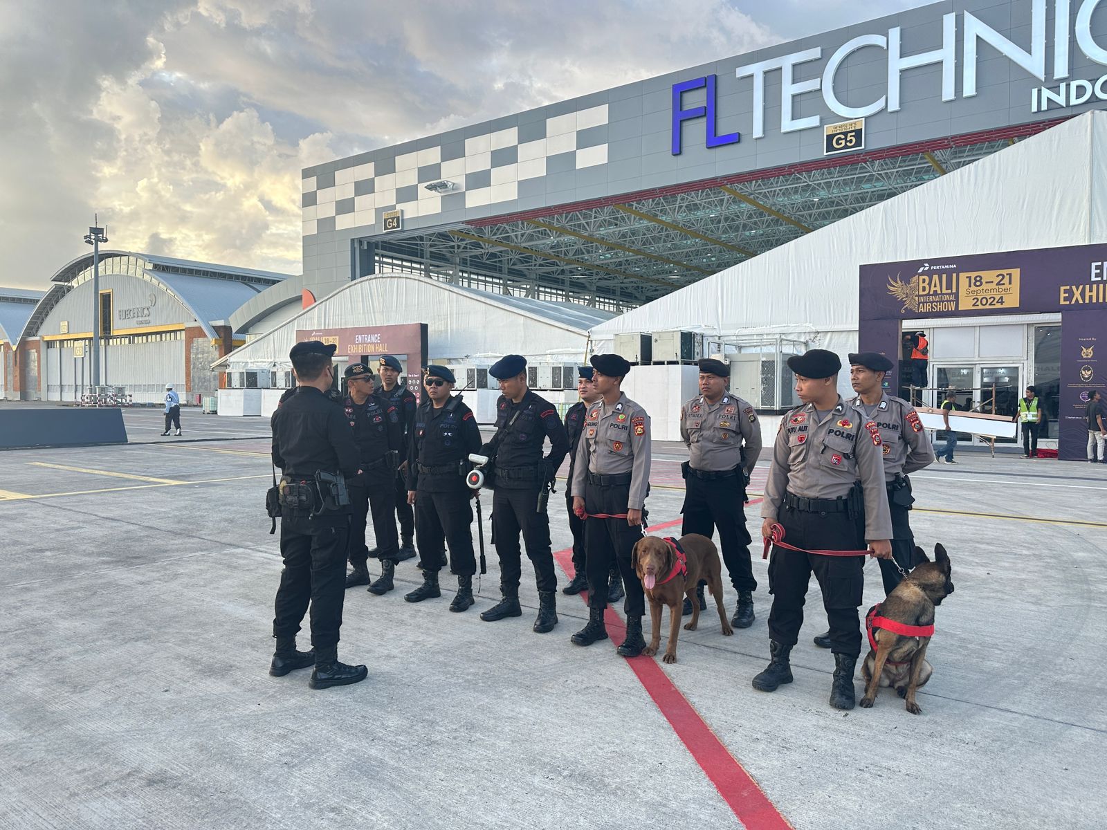 Kepolisian daerah Bali Bergerak dan sudah di tempatkan di berbagai Titik pada area yang akan di laksanakan kegiatan tersebut. sebelum kedatangan para tamu VIP dan Pengunjung, Polda Bali telah menurunkan unit patroli Keamanan, unit Sterilisasi dan Unit patroli K-9, untuk Menunjang keamanan yang akan menyelenggarakan pembukaan Bali International Airshow 2024. Pasukan drone dan anti drone juga disiagakan, sehingga tidak adanya Drone yang berterbangan di area Kawasan Bandara yang akan melaksanakan kegiatan Bali International Airshow 2024.
