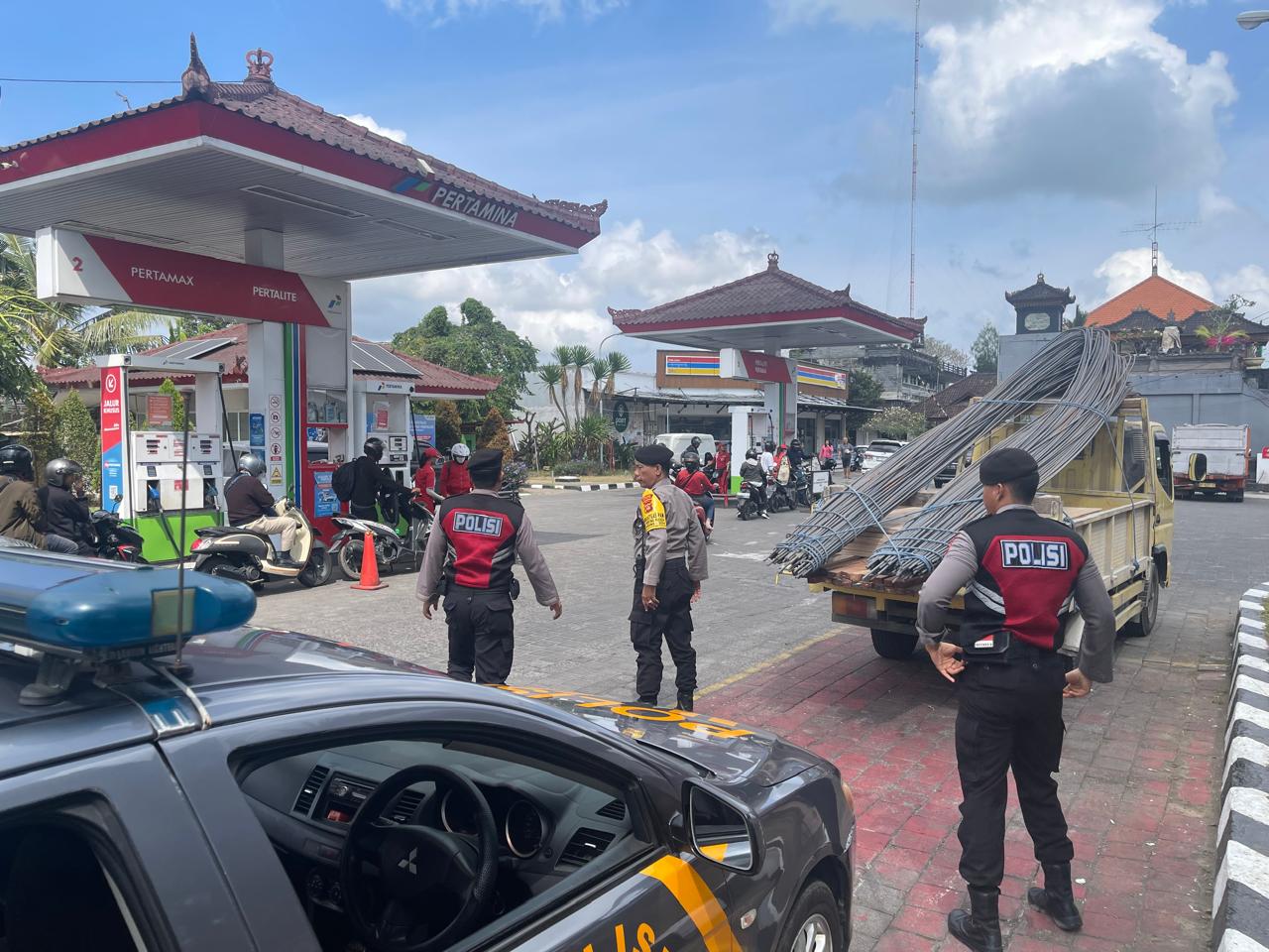“Selain melakukan pengawasan kami juga lakukan komunikasi baik dengan petugas SPBU, pihak security maupun masyarakat yang melakukan aktivitas pengisian BBM di sepanjang SPBU jalur utama untuk selalu meningkatkan kewaspadaannya.” Ungkap Kasat Samapta AKP I Gusti Made Dharma Sudhira, SH.MH. seijin Kapolres Badung AKBP Teguh Priyo Wasono, SIK.