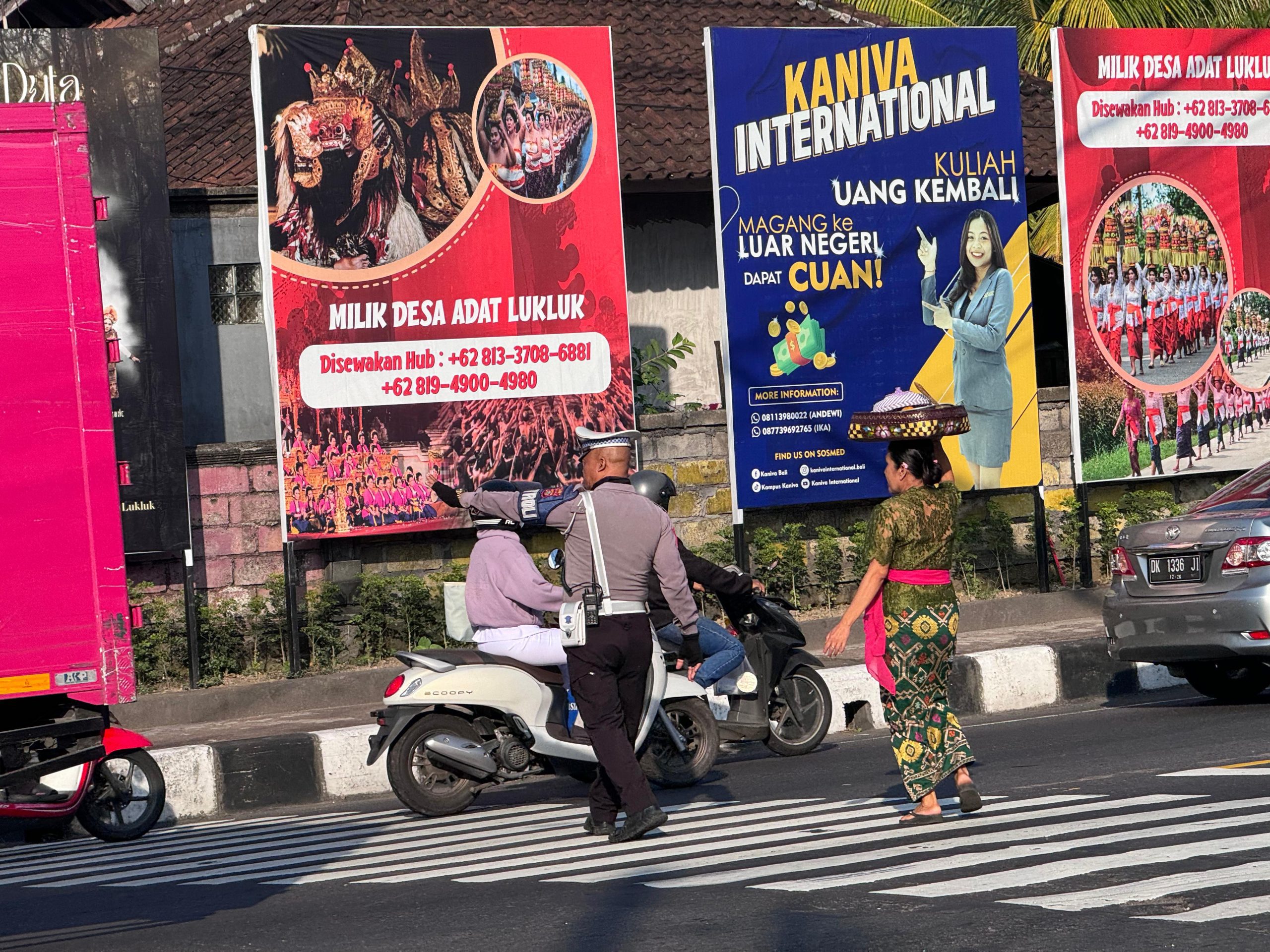 Bali,locusdekictinews- Dalam upaya memberikan pelayanan terbaik kepada masyarakat serta mencegah terjadinya kemacetan serta kecelakaan lalu lintas, salah satu personel satuan Lalu Lintas Polres Badung yakni Aiptu Ngurah Artawan, membantu pejalan kaki menyeberangi jalan di simpang Lukluk II jalan Kelurahan Lukluk, Kecamatan Mengwi, Kabupaten Badung, pada Jumat pagi (13/09). pukul 06.30 Wita