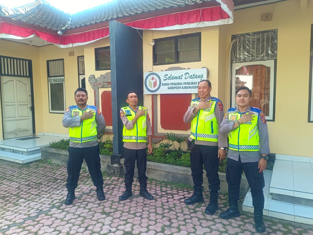Bali,locusdelictinews-Sikum Polres Karangasem Personel Sikum Polres Karangasem yang terlibat dalam Operasi Mantap Praja Agung Tahun 2024 Tahap Penelitian Persyaratan, Penetapan dan Pengundian Nomor Urut Pasangan Calon Bupati Wakil Bupati Kabupaten Karangasem Tahun 2024 di daerah Hukum Polres Karangasem melaksanakan pengamanan di Kantor Bawaslu Kabupaten Karangasem pada Minggu (22/9/2024). Kegiatan pengamanan tersebut dilaksanakan bersama Personel Polres Karangasem di bawah pimpinan Kasubsatgas Pam Penyelenggara Pilkada IPDA I Putu Subagia, melaksanakan kegiatan penjagaan, patroli, himbauam, dan pengawasan disekitaran perkantoran guna menjaga ketertiban dan mencegah potensi gangguan yang mungkin timbul