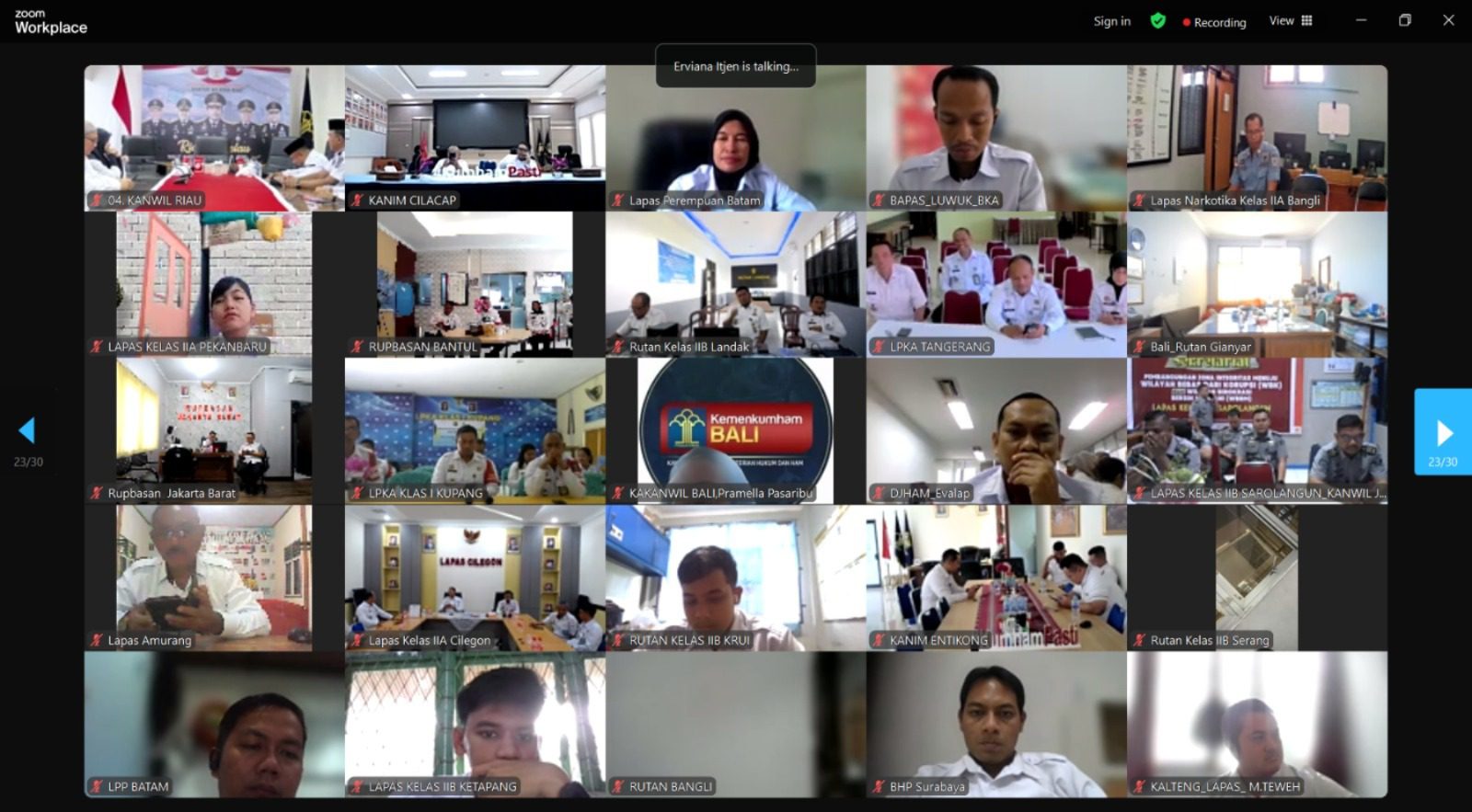Hadir secara daring Kepala Kantor Wilayah (Kakaknwil) Kementerian Hukum dan Hak Asasi Manusia (Kemenkumham) Bali, Pramella Y. Pasaribu beserta Pimti Pratama pada Kantor Wilayah Kementerian Hukum dan HAM Bali.
