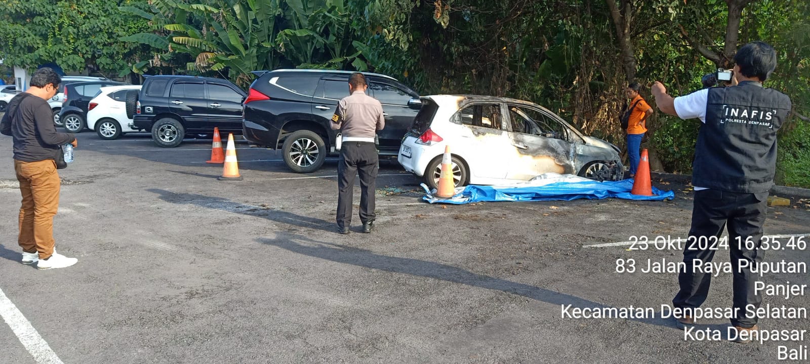Bali,locusdelictinews-Pada Rabu (23/10/2024) sekitar pukul 12.00 wita, terjadi insiden kebakaran dua unit mobil di areal parkir Plaza Renon, Jln. Raya Puputan, Desa Sumerta Kelod, Denpasar Timur. Personel Polsek Denpasar Timur (Dentim) segera merespons kejadian tersebut, berkoordinasi dengan Tim Identifikasi Polresta Denpasar dan Laboratorium Forensik (Labfor) Polda Bali untuk melakukan penyelidikan lebih lanjut terkait penyebab kebakaran.