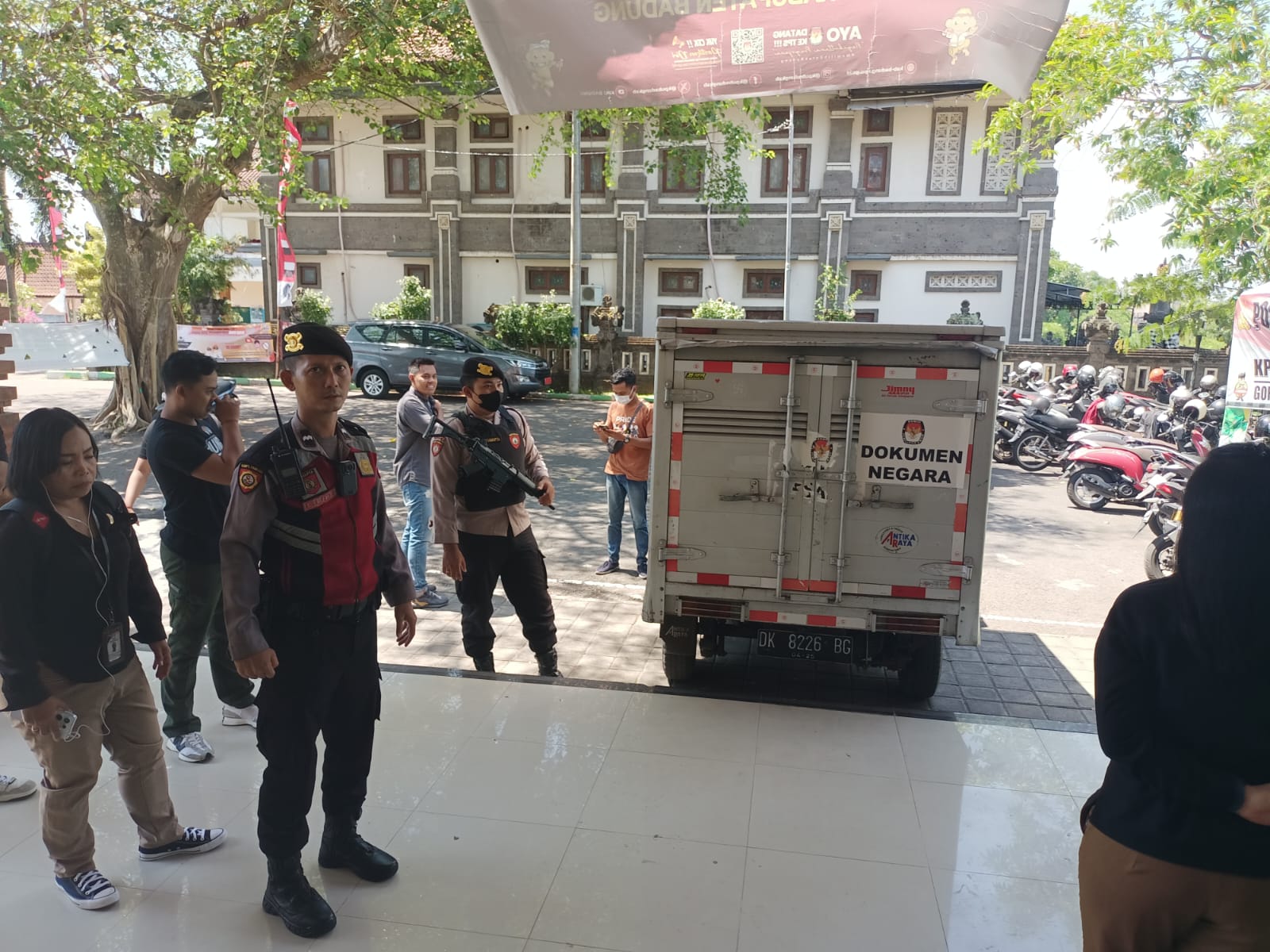 Kapolres Badung, AKBP Teguh Priyo Wasono, SIK melalui Kasatgas Preventif, Kompol I Made Karsa, SH., MH., menjelaskan bahwa pengawalan logistik surat suara tersebut dilakukan dalam rangka menjaga keamanan dan kelancaran pergeseran logistik hingga tiba di Gudang Logistik KPU Kabupaten Badung.