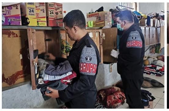 Pelaksanaan razia / penggeledahan kamar hunian berjalan dengan aman, tertib dan lancar.