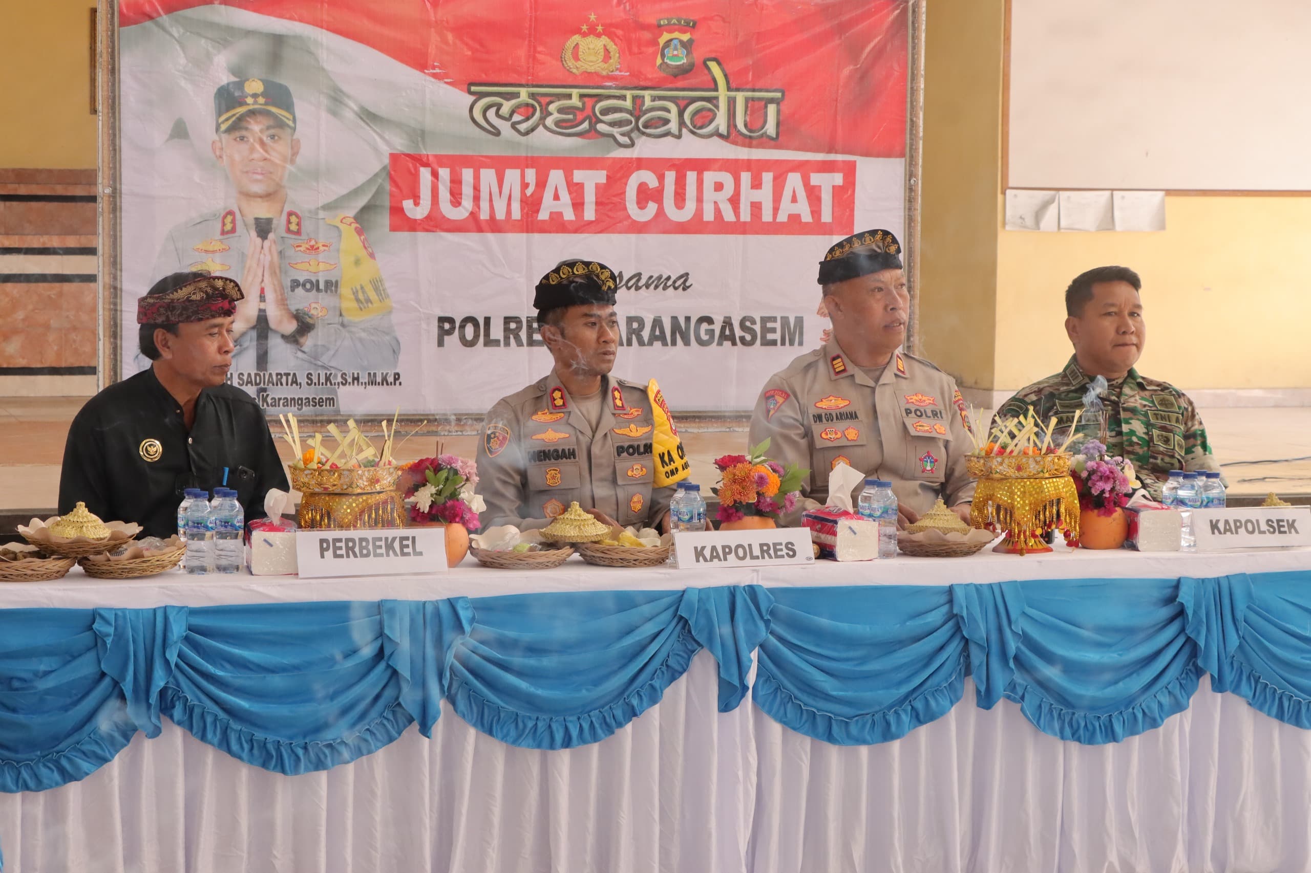 Dalam sambutannya, Kapolres menekankan bahwa kegiatan Jumat Curhat merupakan adopsi dari kearifan lokal Bali “Mesikakrama”, yang bertujuan membangun kemitraan antara Polri dengan masyarakat dan pemangku kepentingan terkait.
