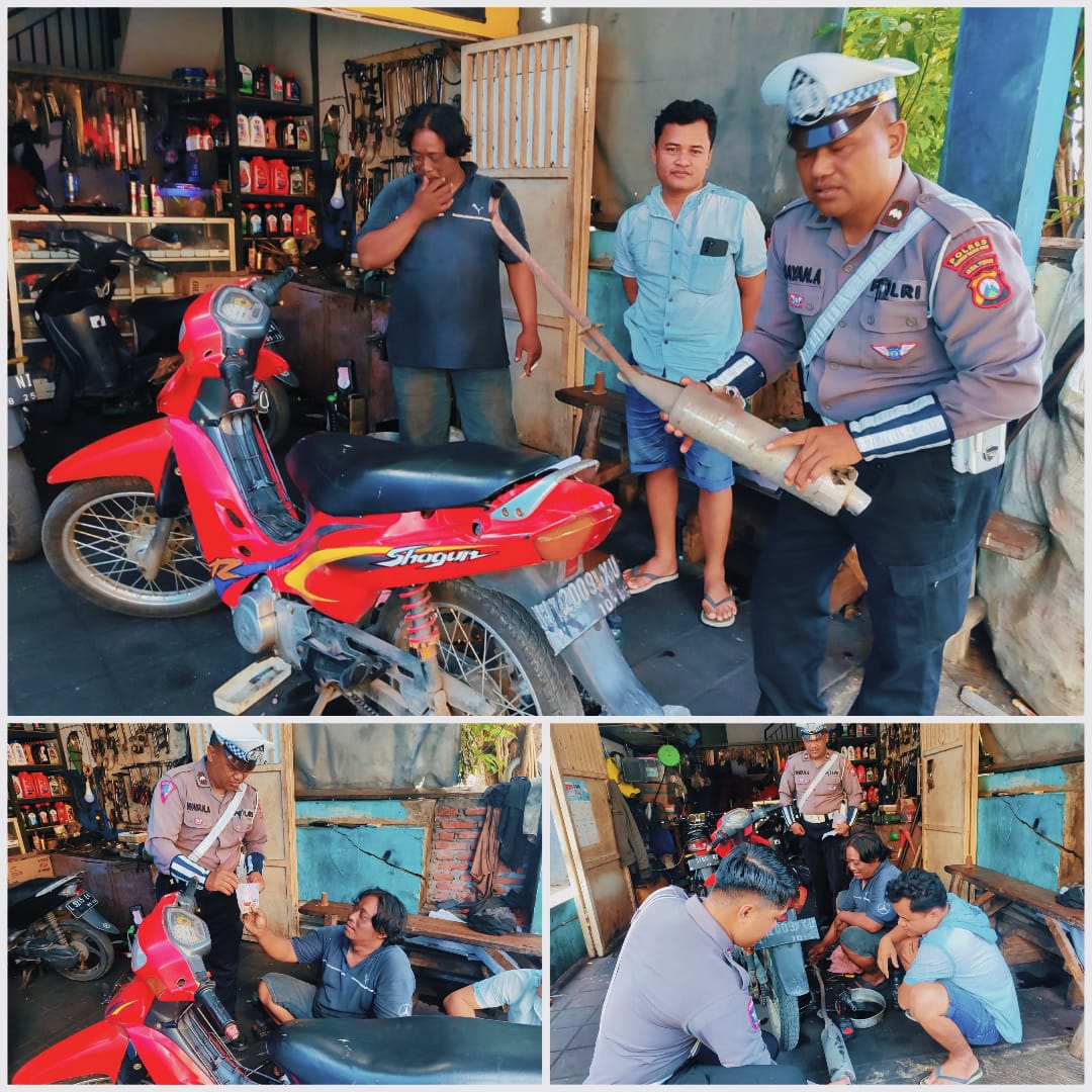 Dalam sosialisasi ini, petugas memberikan pemahaman kepada mekanik bengkel tentang aturan larangan penggunaan knalpot tidak standar sesuai Undang-Undang Lalu Lintas