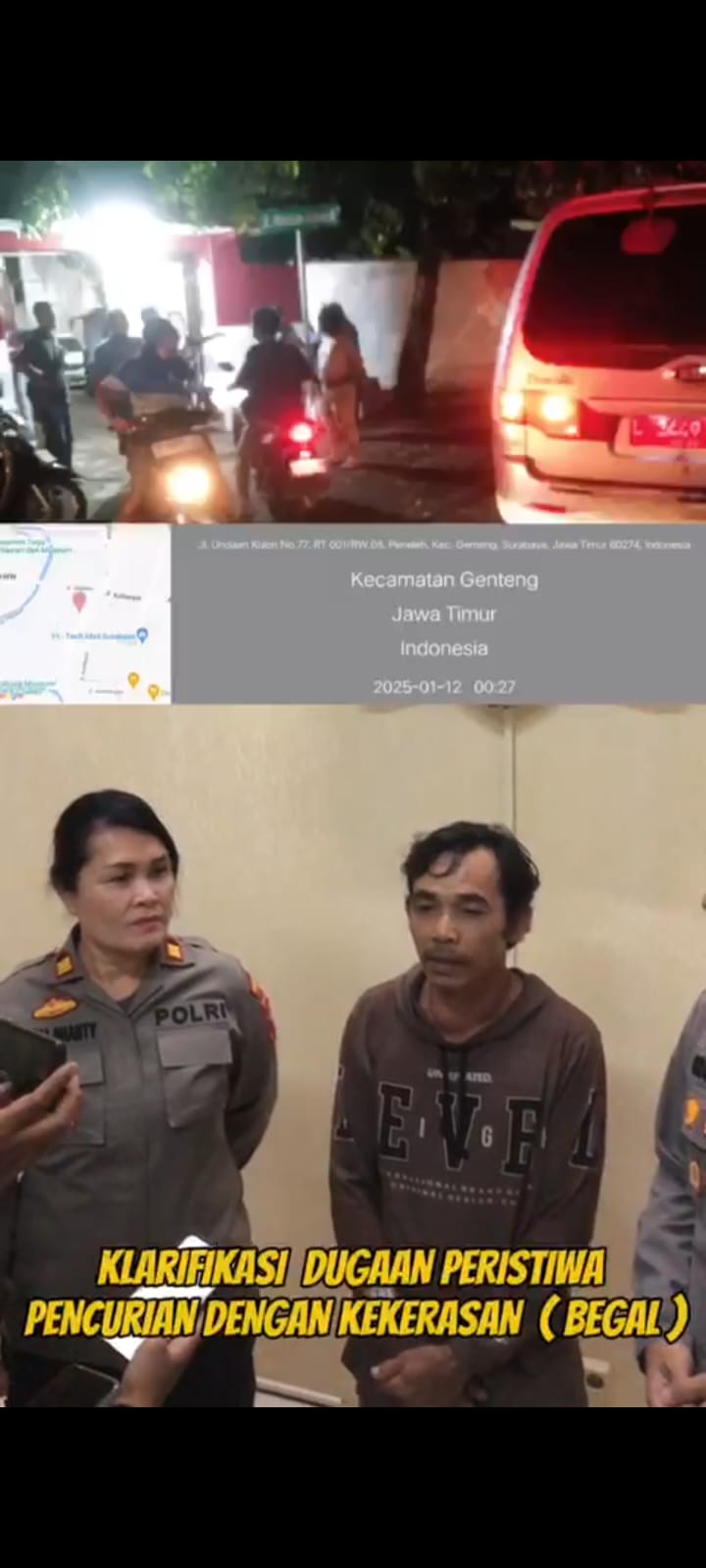 Kapolsek Genteng, AKP Grandhika Indera Waspada S.I.K.,M.I.K. mengungkapkan bahwa pihaknya telah melakukan penyelidikan mendalam termasuk memeriksa rekaman CCTV di sekitar lokasi kejadian.