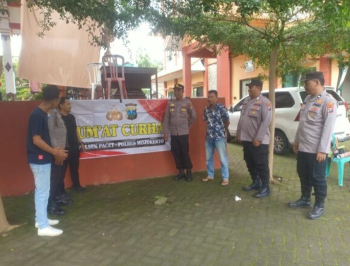 Mojokerto,Locusdelictinews| Kapolsek Pacet IPTU U.M. Umam. Melalui Kanit Samapta IPDA Rudi Kurniawan. Melaksanakan “Jum’at Curhat” Bagian Dari 8 Program Unggulan Polres Mojokerto.