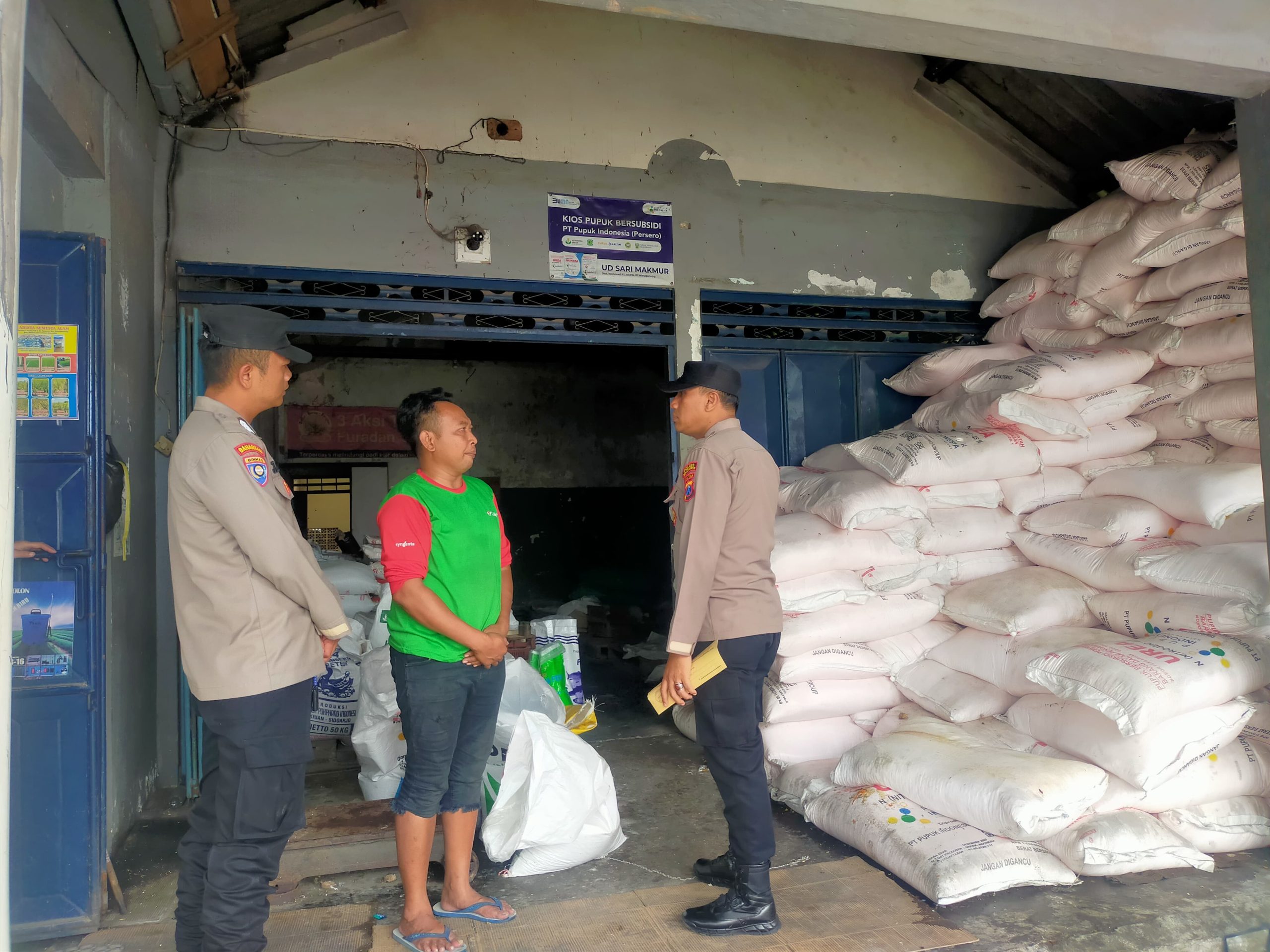 Mojokerto,Locusdelictinews,,Mendukung program ketahanan pangan nasional Kapolsek Pacet IPTU M.K. Umam melalui anggota patroli polsek pacet memantau secara langsung ketersediaan pupuk bagi petani atau masyarakat dan untuk Patroli Strong Point Harkamtibmas Polsek Pacet kali ini mendatangi Toko Pupuk UD. Sari Makmur yang berlokasi di Dusun Wonosari, Desa Warugunung, Kecamatan Pacet, Kabupaten Mojokerto, Sabtu (18/01/25)