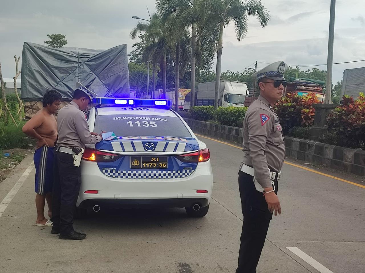 “Ada tiga truk yang kami tilang dan lainnya berupa teguran. Baru kemarin kami melakukan sosialisasi di tempat ini, namun masih saja ditemukan adanya sopir truk yang membandel dengan memarkir kendaraannya di sepanjang jalur ini,” kata Kasatlantas Polres Badung AKP I Wayan Sugianta, SH., seijin Kapolres Badung AKBP M. Arif Batubara, SH., SIK., MH., M.Tr.Opsla.