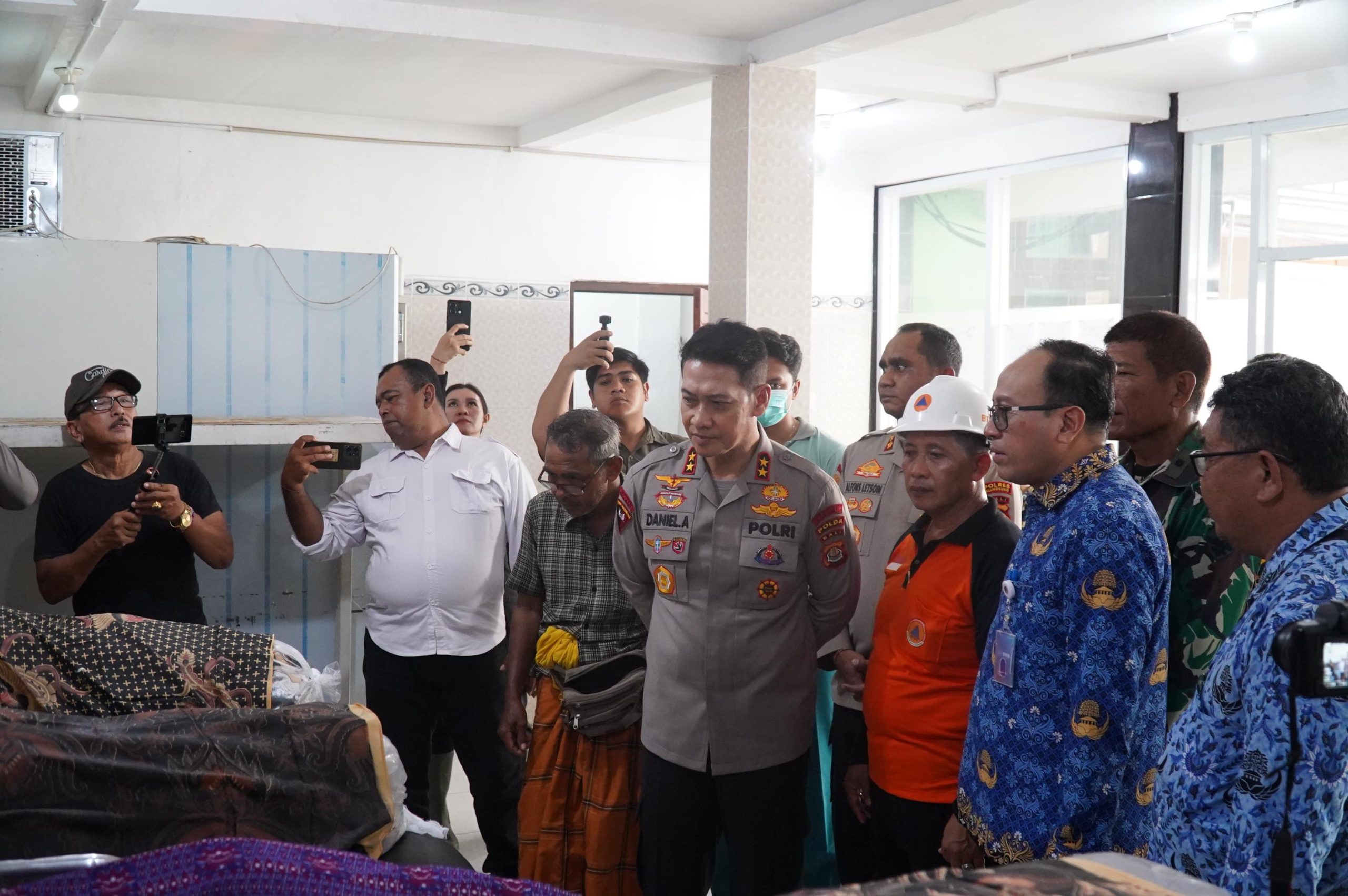 Bali, Locusdelictinews|Kepala Kepolisian Daerah Bali, Irjen. Pol. Daniel Adityajaya, S.H., S.I.K., M.Si. didampingi Pejabat Utama (PJU) Polda Bali meninjau langsung lokasi longsor sekaligus menjenguk korban yang tertimpa bencana di Dawan, Klungkung, Senin (20/1/2025).