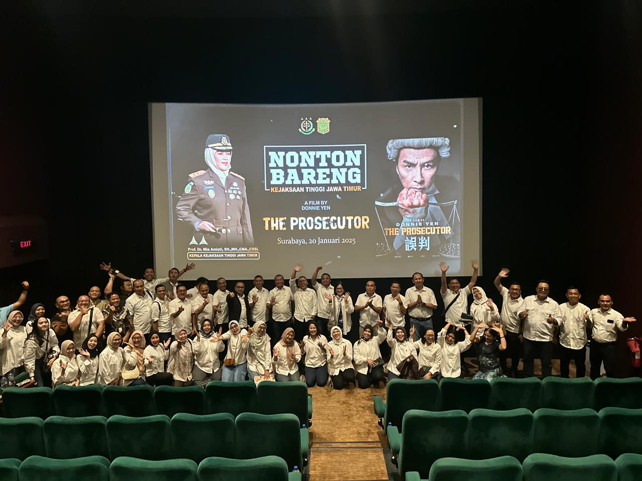 Surabaya,locusdelictinews| locus.febry.my.id/. Dalam rangka memupuk rasa solidaritas dan soliditas antar Kajari se-Jawa Timur, Kajati Jatim Prof (HCUA) Dr. Mia Amiati, S.H., MH., CMA., CSSL., dengan didampingi oleh Wakajati dan para pejabat Utama Kejati Jatim mengajak para Kajari se-Jawa Timur untuk menonton film Bersama (Nobar) sebuah Film yang dapat mengedukasi para Jaksa dengan judul The Prosecutor. Minggu (20/1).