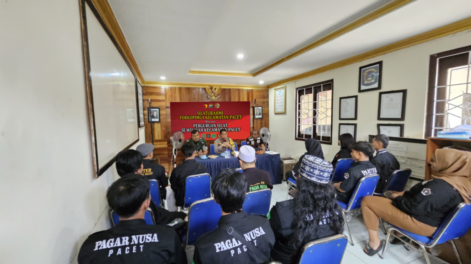 Mojokerto,locusdelictinews| Bertempat di Mapolsek Pacet telah dilaksanakan kegiatan silaturahmi Ps. Kapolsek Pacet Iptu M.K Umam dan Forkopimca Pacet bersama perguruan pencak silat se-Kecamatan Pacet, Acara yang dimulai pukul 09.55 WIB hingga 10.30 WIB tersebut berlangsung dengan lancar, Kegiatan dihadiri oleh 30 orang, termasuk tokoh-tokoh penting dari masing – masing perguruan silat.