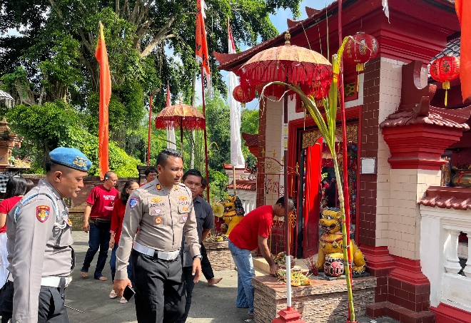 Bali, Locusdelictinews|Kepolisian Daerah Bali dan Polres Jajaran mengamankan dan mengawasi jalannya perayaan Imlek 2025 yang terlaksana di beberapa titik tempat ibadah klenteng, kongco hingga vihara yang tersebar di wilayah Bali.