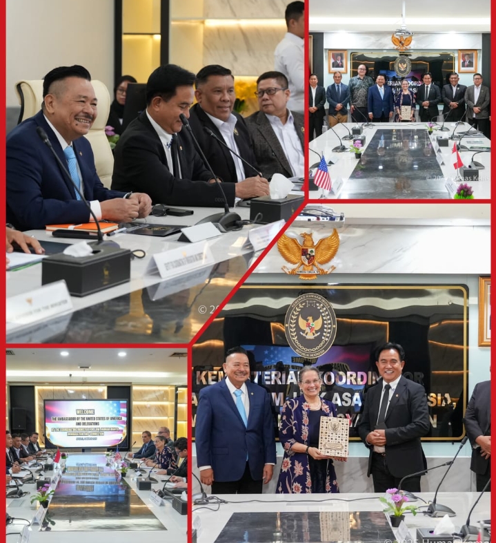 Besar Amerika Serikat untuk Indonesia, Kamala S. Lakhdhir, di ruang rapat Menko Kumham imipas. Pertemuan ini membahas berbagai isu strategis, termasuk kebijakan imigrasi terbaru