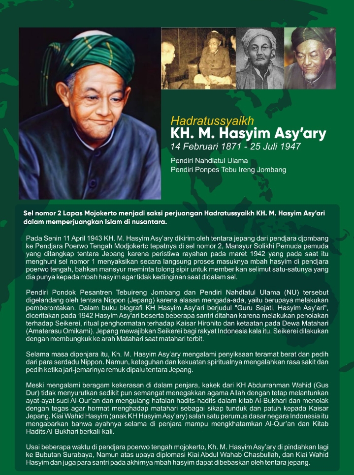 Dalam kesempatan khusus, Kalapas Mojokerto, Rudi Kristiawan, menjelaskan sejarah panjang kamar tersebut kepada jajaran pegawai dan tamu yang berkunjung. Ia menuturkan bahwa K.H. Hasyim Asy’ari, pendiri Nahdlatul Ulama (NU), ditangkap dan dipenjara oleh Jepang karena menolak ritual penghormatan terhadap Kaisar Hirohito dan ketaatan kepada Dewa Matahari (Seikerei)