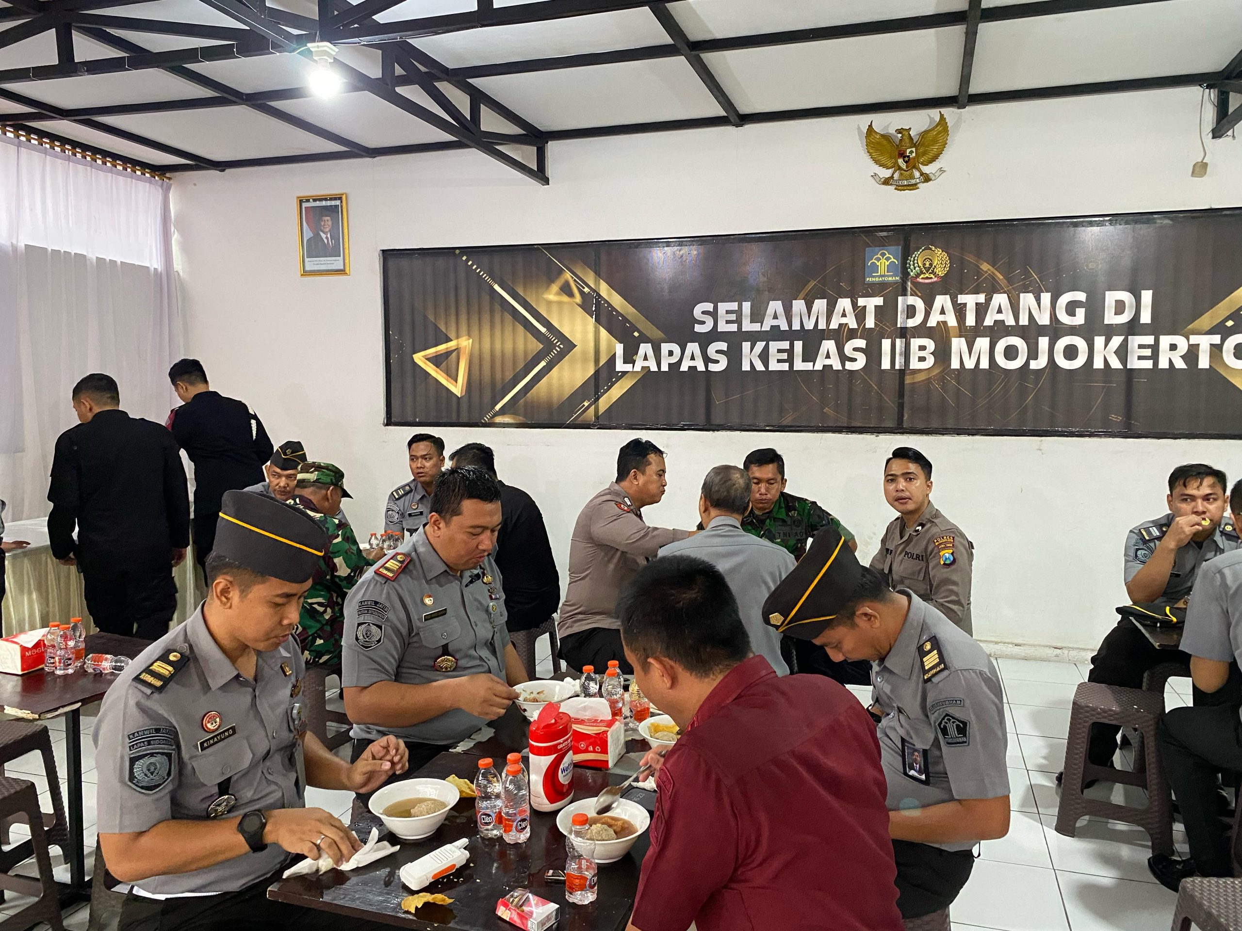 Mojokerto, locusdelictinews| Seluruh jajaran Lembaga Pemasyarakatan (Lapas) Mojokerto bersama stakeholder dari unsur TNI dan Polri menggelar acara penutupan layanan kunjungan Lebaran dengan penuh kebersamaan  [2-4]. Kegiatan yang berlangsung di Aula terbuka Lapas Mojokerto ini ditutup dengan makan bersama sebagai bentuk sinergi dan soliditas antara petugas pemasyarakatan dan aparat keamanan.
