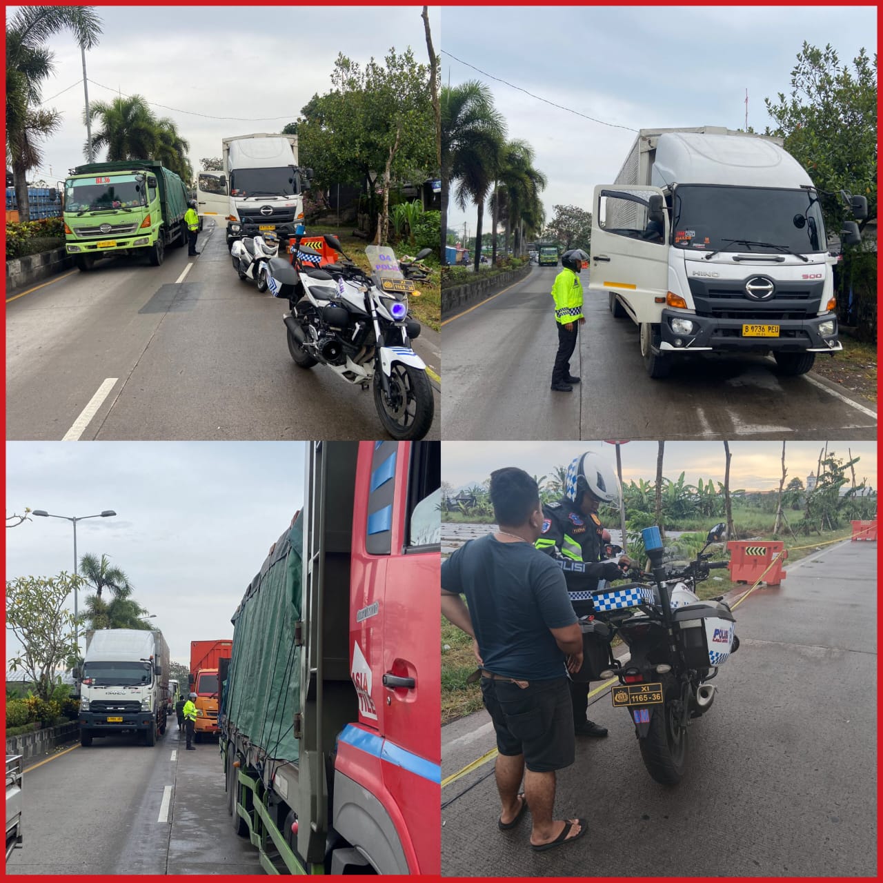 “Jalur ini memang padat dengan arus lalu lintas, sehingga jika terdapat kendaraan yang parkir atau rusak barang tentu kemacetan tidak bisa dihindari. Untuk itu Mari kita patuhi aturan lalu lintas yang ada, guna kelancaran, keamanan dan keselamatan bersama.” Ajaknya