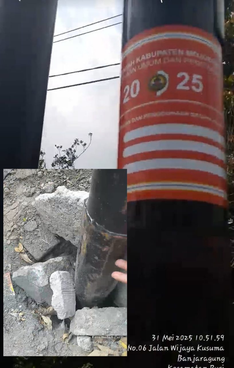 Tiang tersebut memiliki warna hitam diujung tiang ada ciri khas warna pink. terpasang di area Desa Banjar agung, kecamatan puri, desa sooko, desa japan dan desa jampirogo. Kecamatan Sooko.