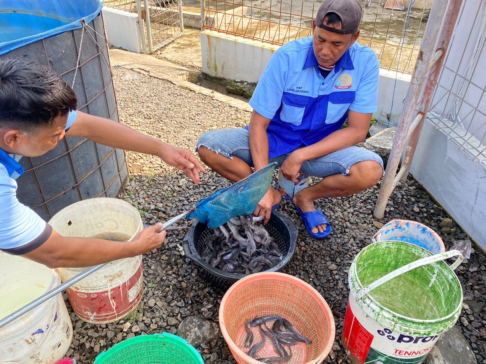 Mojokerto, locusdelictinews|Sebagai wujud nyata dalam mendukung program ketahanan pangan dan pemberdayaan warga binaan, Lapas Kelas IIB Mojokerto menggelar panen lele di area Sarana Asimilasi dan Edukasi (SAE), [11/06]. Kegiatan ini merupakan implementasi langsung dari salah satu poin dalam 13 Program Akselerasi Menteri Imigrasi dan Pemasyarakatan, yaitu penguatan ketahanan pangan serta pembinaan kemandirian bagi Warga Binaan Pemasyarakatan (WBP).