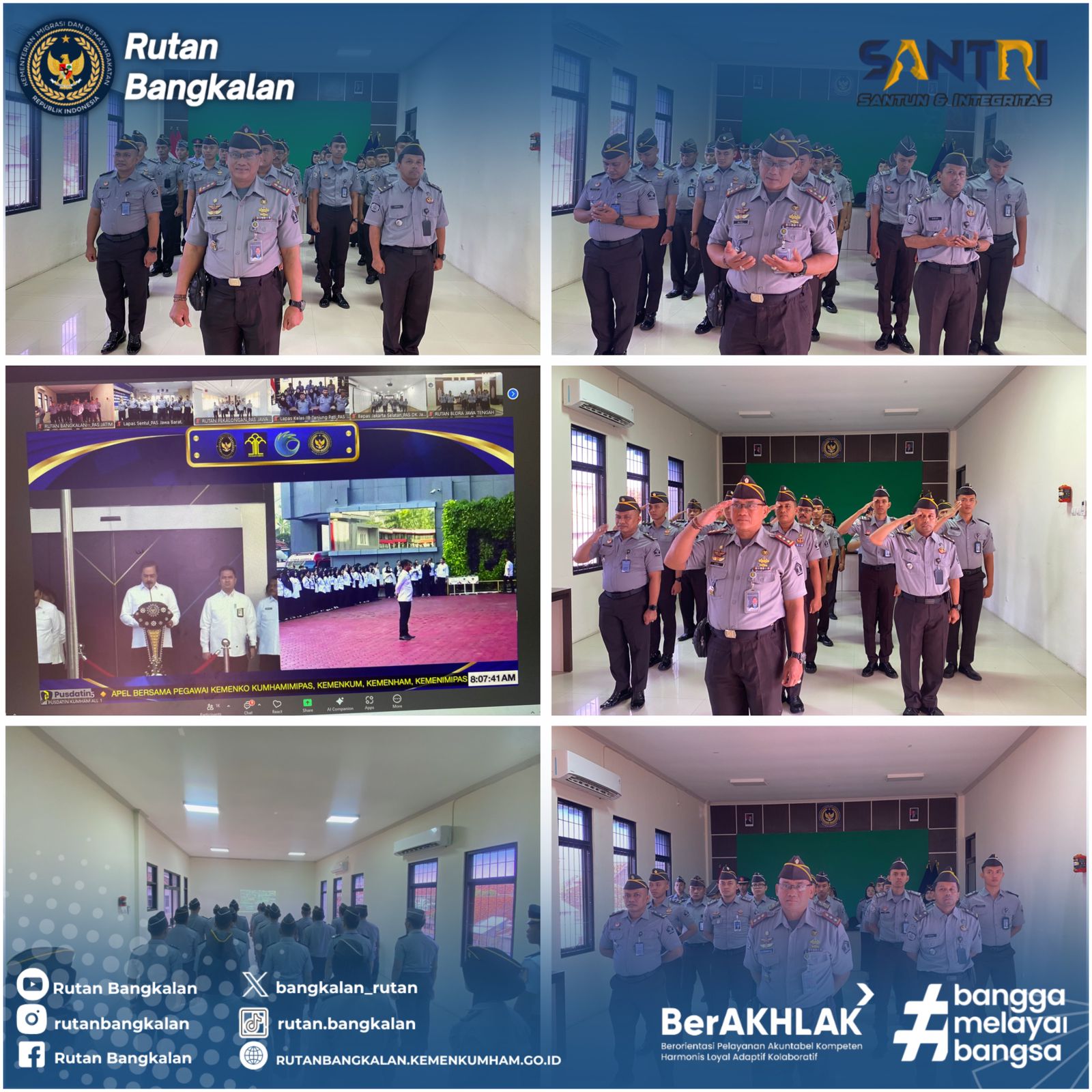 Apel yang dilaksanakan secara virtual melalui platform Zoom Meeting ini dipimpin langsung oleh Bapak Budi Setyo Prabowo, selaku Kepala Rutan Bangkalan Kegiatan ini diikuti secara serentak oleh pegawai dari berbagai unit kerja Pusat Kanwil maupun UPT.