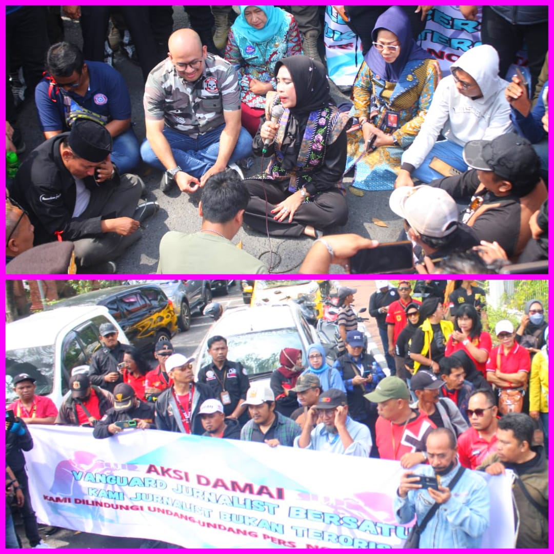 Aksi yang berlangsung ini Alhamdulillah sudah ditemui oleh Wabub Sidoarjo Mimik Idayana dan duduk bareng ditengah jalan bersama massa aksi dari berbagai jurnalis yang tergabung di Vanguard Jurnalis