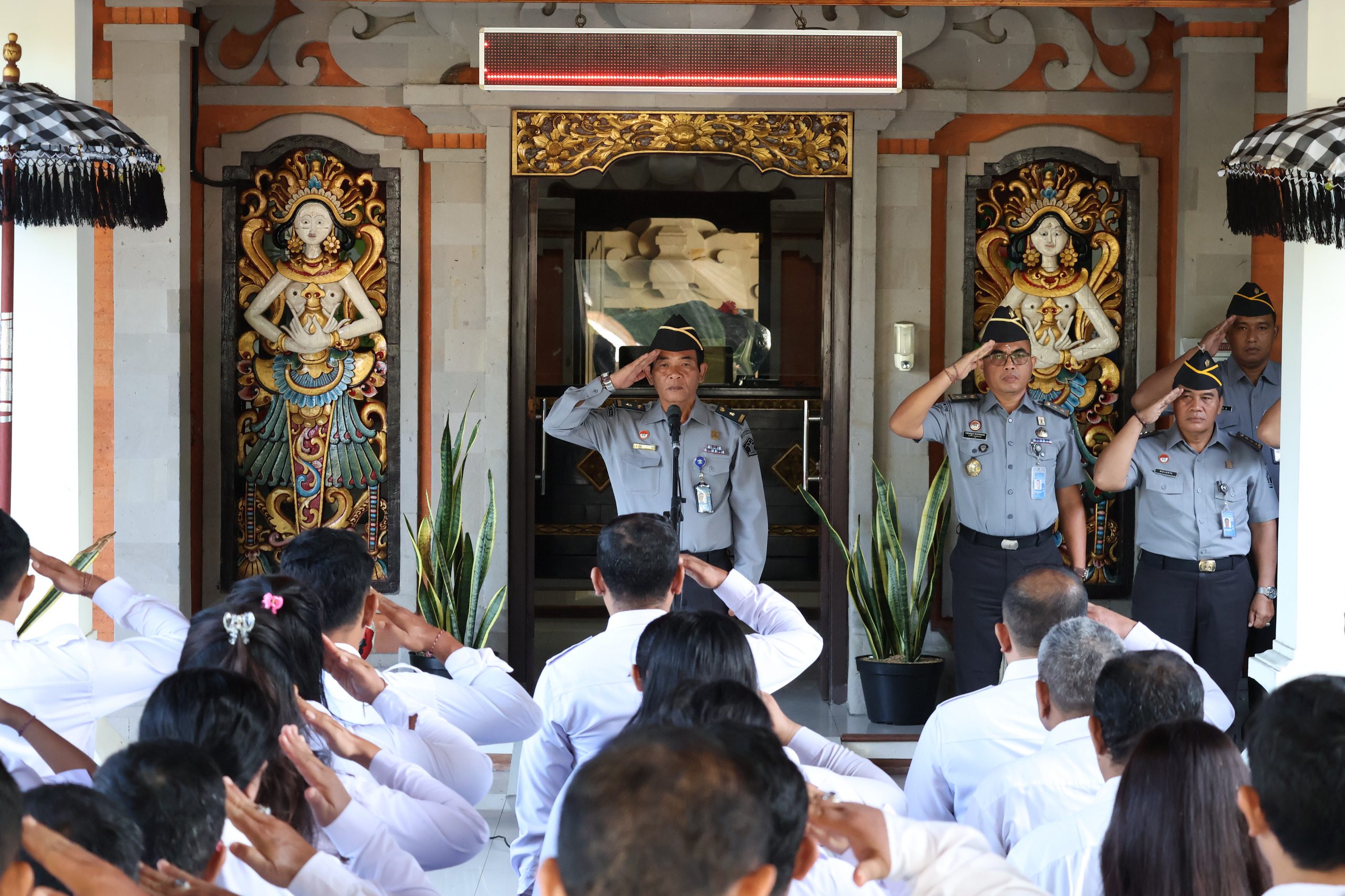 Denpasar,locusdictinews|Kepala Divisi Pelayanan Hukum Kanwil Kementerian Hukum Bali, I Wayan Redana, memimpin apel pagi bersama yang diikuti oleh jajaran Kantor Wilayah Kementerian Hukum Bali, Kanwil Ditjen Imigrasi Bali, Kanwil Ditjen Pemasyarakatan Bali, serta Kanwil HAM NTT wilayah kerja Bali pada Senin (30/6/2025).