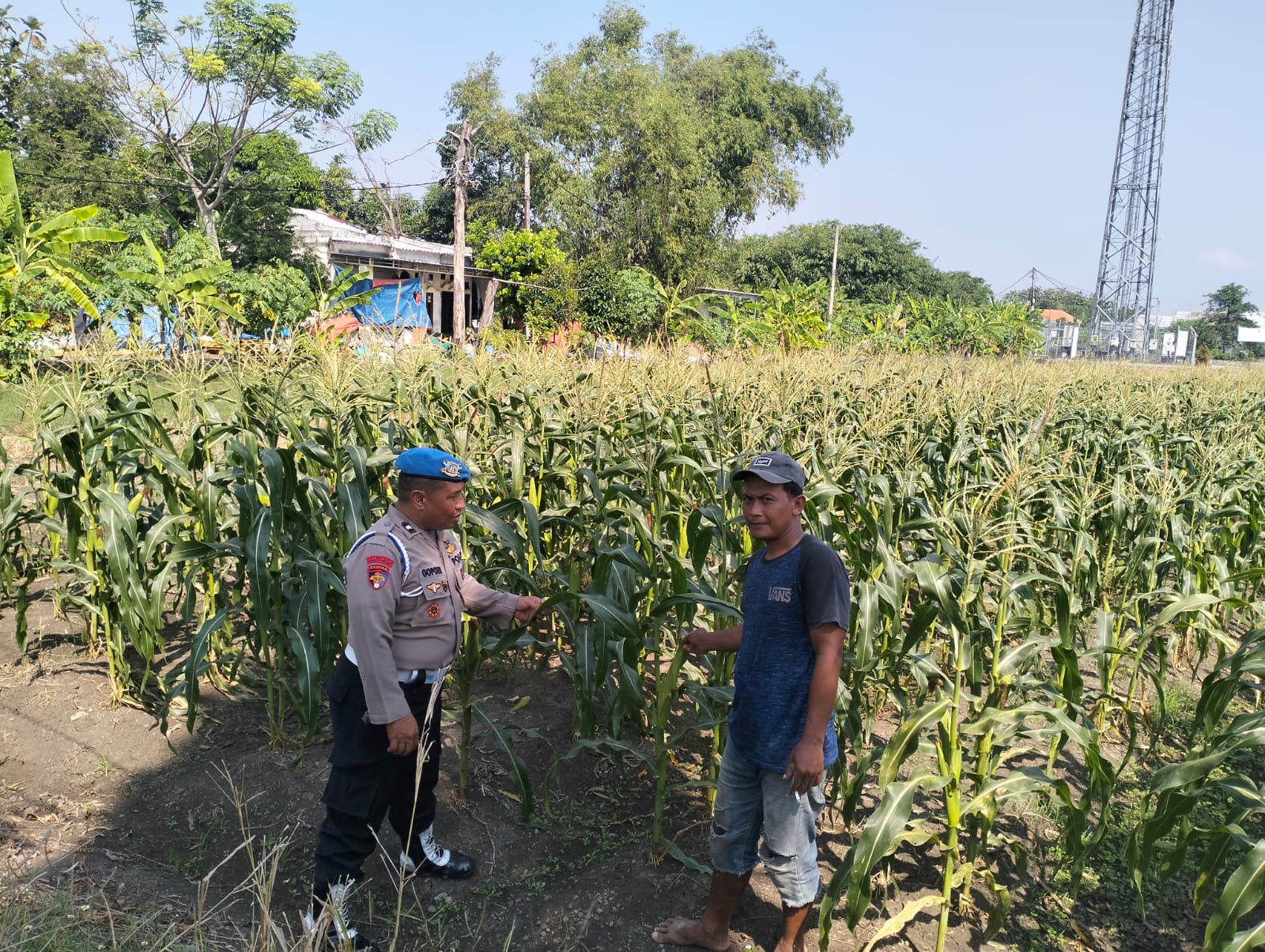 Aipda Abdoel Gopoer memberikan motivasi serta edukasi ringan kepada petani agar senantiasa menjaga kebersihan lahan dari gulma yang dapat menghambat pertumbuhan jagung. Perhatian ini diberikan sebagai bagian dari komitmen Polresta Sidoarjo dalam mendukung program ketahanan pangan di wilayah Kabupaten Sidoarjo.