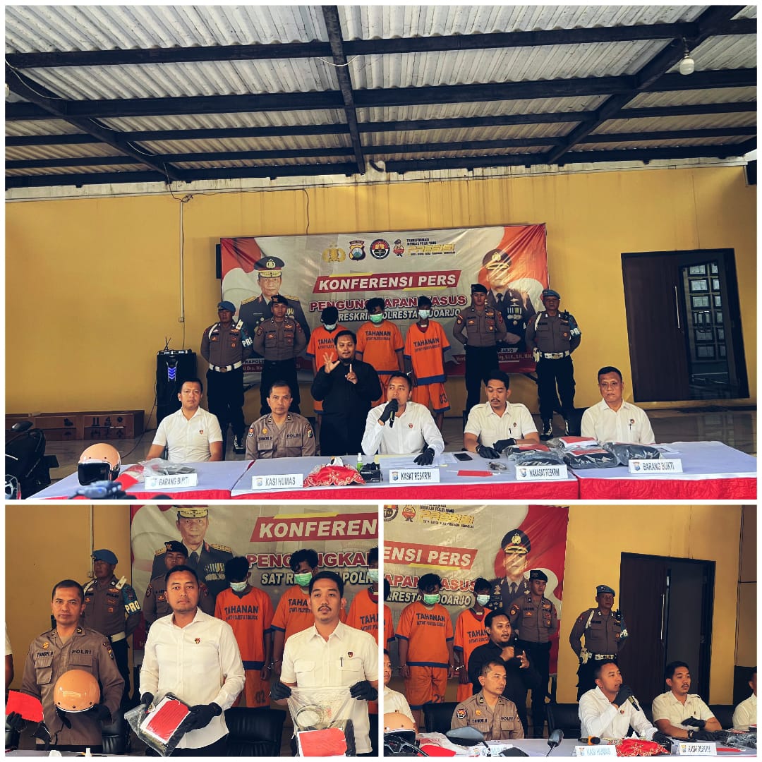 Mereka yang berhasil diamankan Satreskrim Polresta Sidoarjo, adalah ZMA (19) warga Gajah Magersari, KSP (20) warga Gajah Magersari, FNW (18) warga Desa Kloposepuluh, AC (15) warga Desa Kloposepuluh, BA (14) warga Ketintang Kota Surabaya, RF (16) warga Desa Kloposepuluh dan AMP (17) Kecamatan Purworeja Klampok, Kabupaten Banjarnegara.