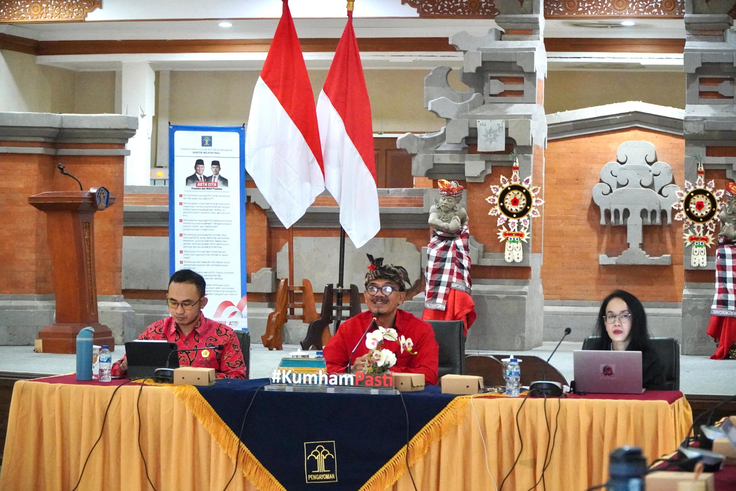 Lebih lanjut, Adhi Karmayana juga menyoroti program unggulan Pos Pelayanan Hukum dan HAM Desa (Posyankumhamdes) yang telah berjalan di Bali dengan kurang lebih sudah dibentuk di 324 desa dan kini diadopsi menjadi program nasional Posbankum. Pos ini berperan penting dalam membantu penyelesaian permasalahan hukum masyarakat di tingkat desa.