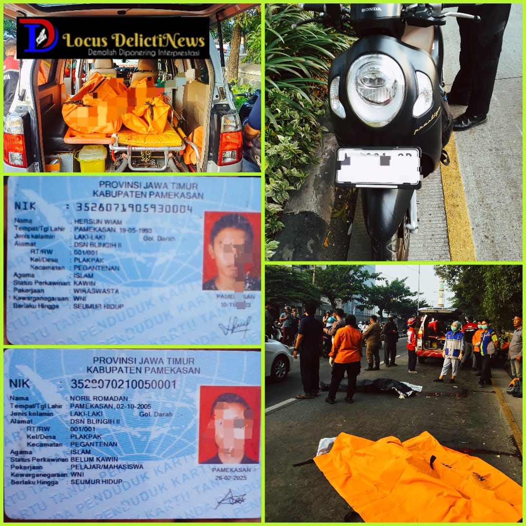 Surabaya,locusdelictinews|Kecelakaan maut di jalan Kedung Cowek, Kecamatan Kenjeran, Kota Surabaya, Pada Kamis 14 Agustus 2025, ditemukan dua orang pengendara motor terkapar bersimbah darah ditengah jalan.