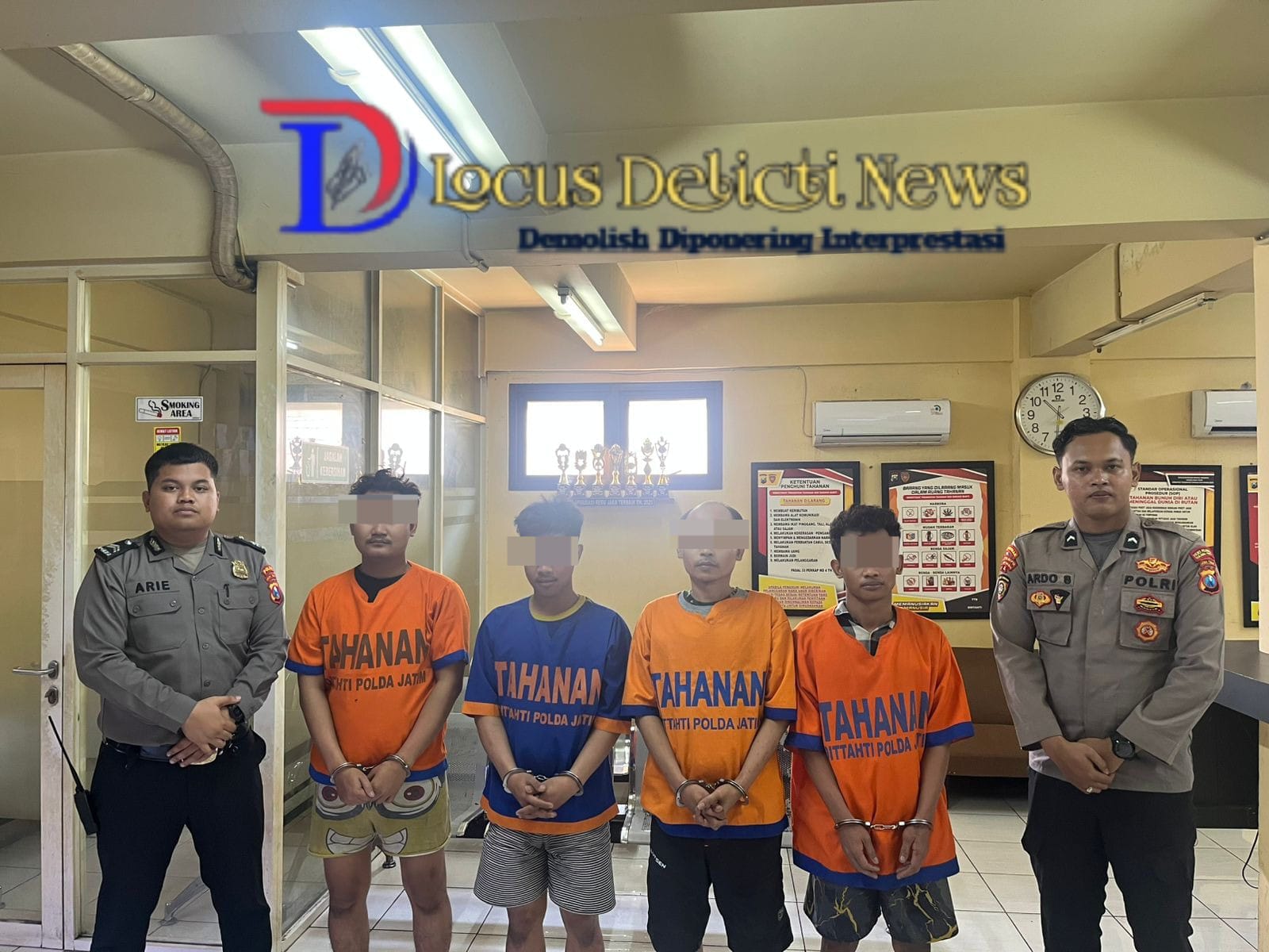 Surabaya,locusdelictinews|Komplotan pelaku Pencurian dengan Kekerasan (Curas) yang beraksi menggunakan senjata tajam (sajam) di Jalan Gula, Surabaya, akhirnya ditangkap Satreskrim Polres Pelabuhan Tanjung Perak. Empat tersangka diamankan sementara tiga lainnya masih dalam Daftar Pencarian Orang (DPO).