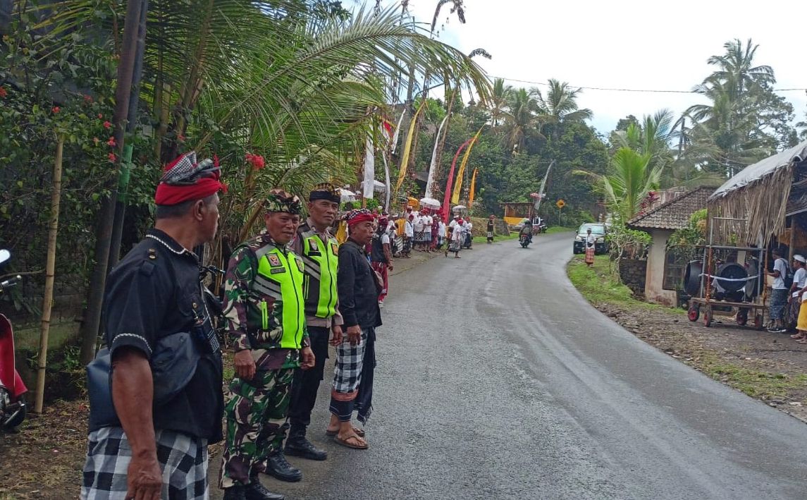 Kegiatan pengamanan dipimpin langsung oleh Bhabinkamtibmas Desa Belimbing, Aiptu I Gede Ketut Alit Widiana. Personel ditempatkan di jalur utama yang dilalui rombongan guna memastikan arus lalu lintas tetap lancar dan situasi tetap kondusif. Kehadiran aparat kepolisian memberikan rasa aman kepada masyarakat sekaligus mendukung khidmatnya prosesi adat yang dihadiri tokoh masyarakat dan undangan.