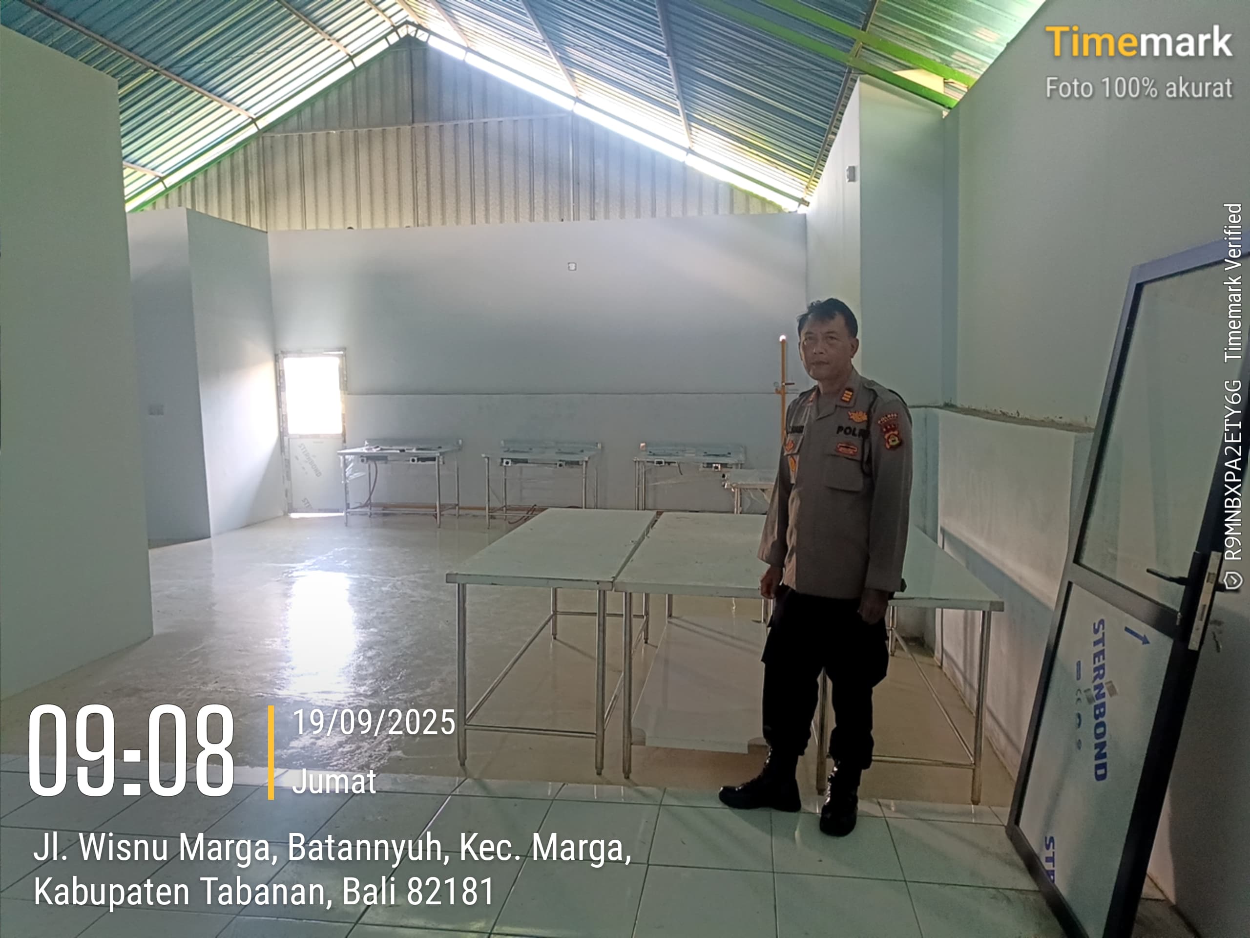 Jumat,(19/09/2025),pukul 09.00 s/d 10.00 wita, Kapolsek marga didampingi bhabinkamtibmas desa batannyuh bersama unit intelkam melaksanakan pengecekan lokasi atau bangunan yang akan digunakan untuk program Makan Bergizi Gratis (MBG) dengan satuan pelayanan pemenuhan gizi (SPPG) yang bertempat di wilayah banjar dinas batannyuh kaja,desa batannyuh,kec marga,tabanan.