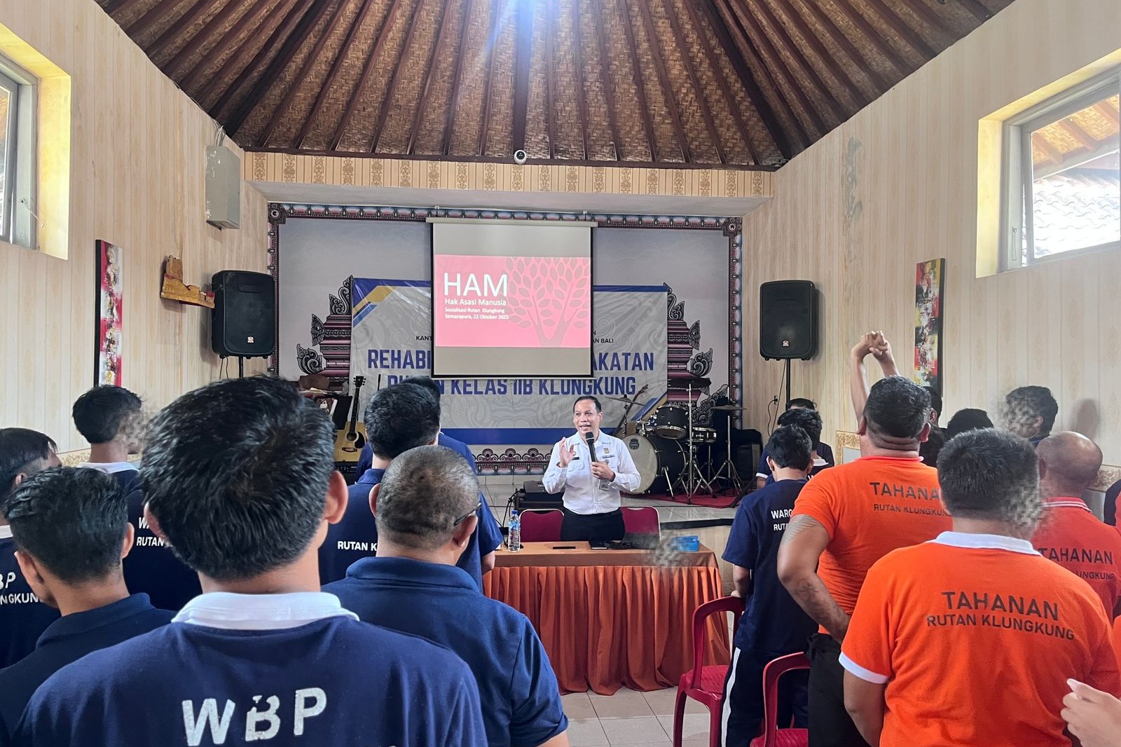 Klungkung,locusdelictinews|Sebanyak 20 Warga Binaan Pemasyarakatan (WBP) dari program rehabilitasi di Rumah Tahanan Negara (Rutan) Kelas IIB Klungkung mengikuti sesi sosialisasi Kesadaran Hukum yang berfokus pada Hak Asasi Manusia (HAM), Rabu (22/10). Kegiatan ini bertujuan untuk memastikan WBP tetap terinformasi dan menyadari hak-hak dasar mereka, meskipun sedang menjalani masa pidana.