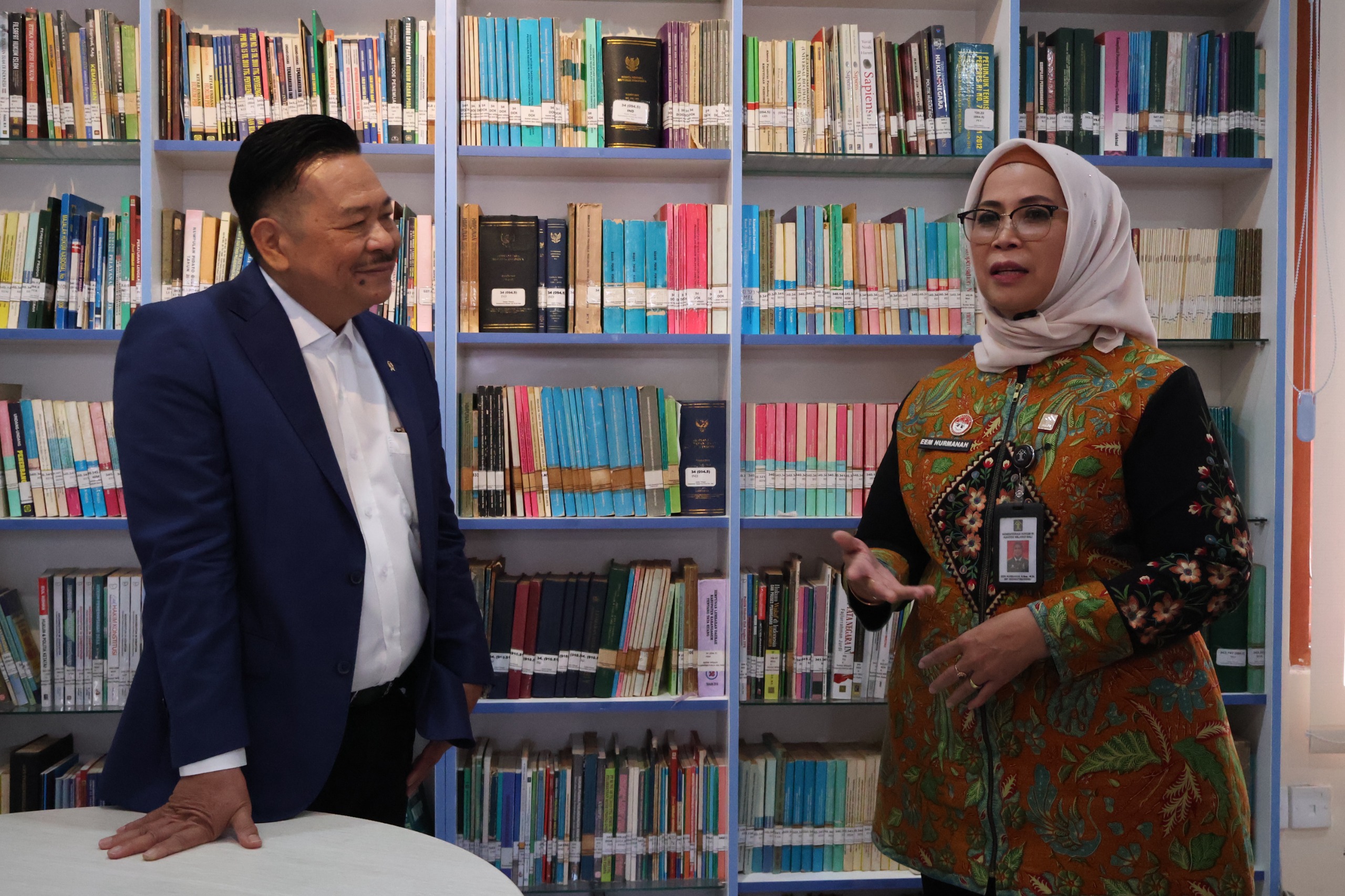 Wamenko Otto Hasibuan menyempatkan diri melihat koleksi buku, jurnal, dan sumber informasi hukum lainnya yang tersedia di perpustakaan tersebut. Beliau terkesan dengan pemanfaatan ruangan kosong yang minimalis di Kanwil Kemenkum Bali yang diubah menjadi sarana layanan yang inovatif dan sangat bermanfaat.