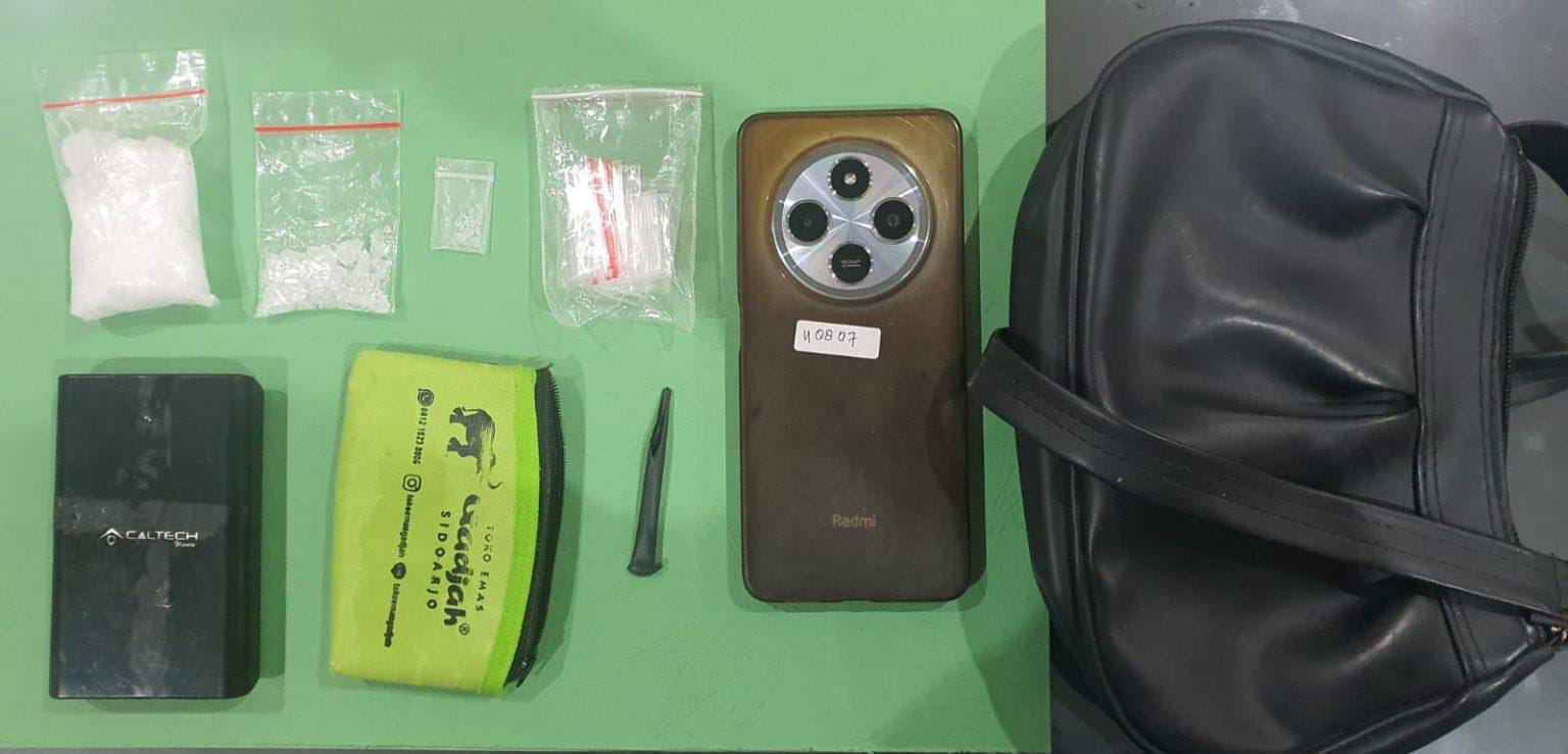 “Sabu itu berada terbagi dalam kantong plastik berisikan kristal warna putih narkotika jenis sabu dengan berat netto + 28,397 gram, + 2,550 gram, + 0,046 gram, timbangan elektrik warna hitam, skrop dari sedotan, 7vplastik klip, dompet dan juga tas,” imbuh mantan Wakapolres Kediri Kota ini.