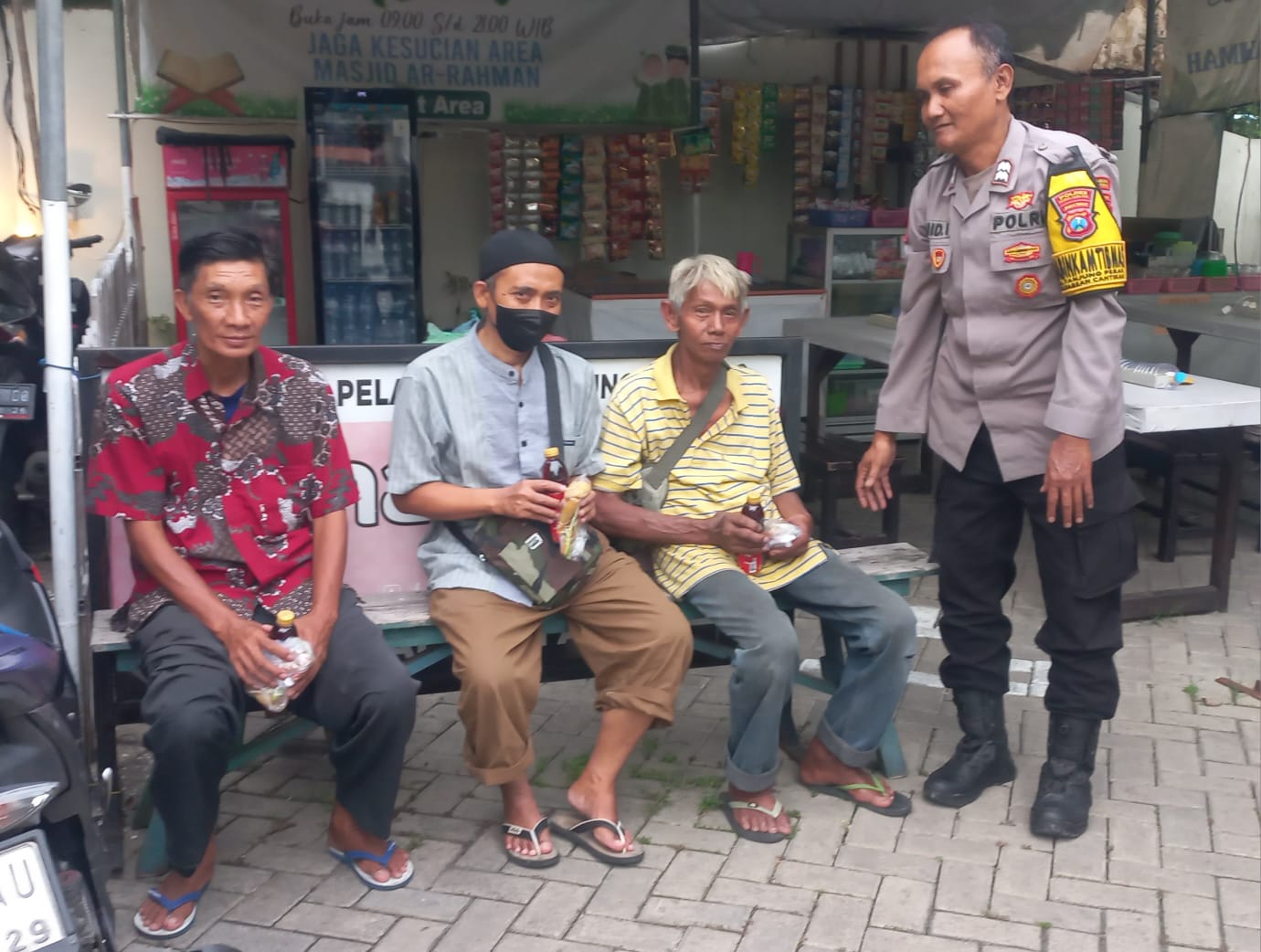 Rombongan tiba di halaman Masjid Ar-Rahmah Jalan Stasiun Kota sekitar pukul 17.00. Tak butuh waktu lama, para personel polisi langsung membaur dengan jemaah masjid yang tengah menunggu kumandang azan Magrib.
