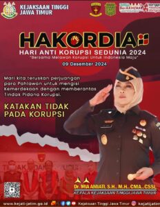Kajati Jatim Mia Amiati Beri Pesan Khusus di Peringatan Hari HAKORDIA 2024 Berita Utama|December 9, 2024by Locus DelictiNews Surabaya – Locusdelictinews|Kepala Kejaksaan Tinggi Jawa Timur (Kajati Jatim) Dr. Mia Amiati