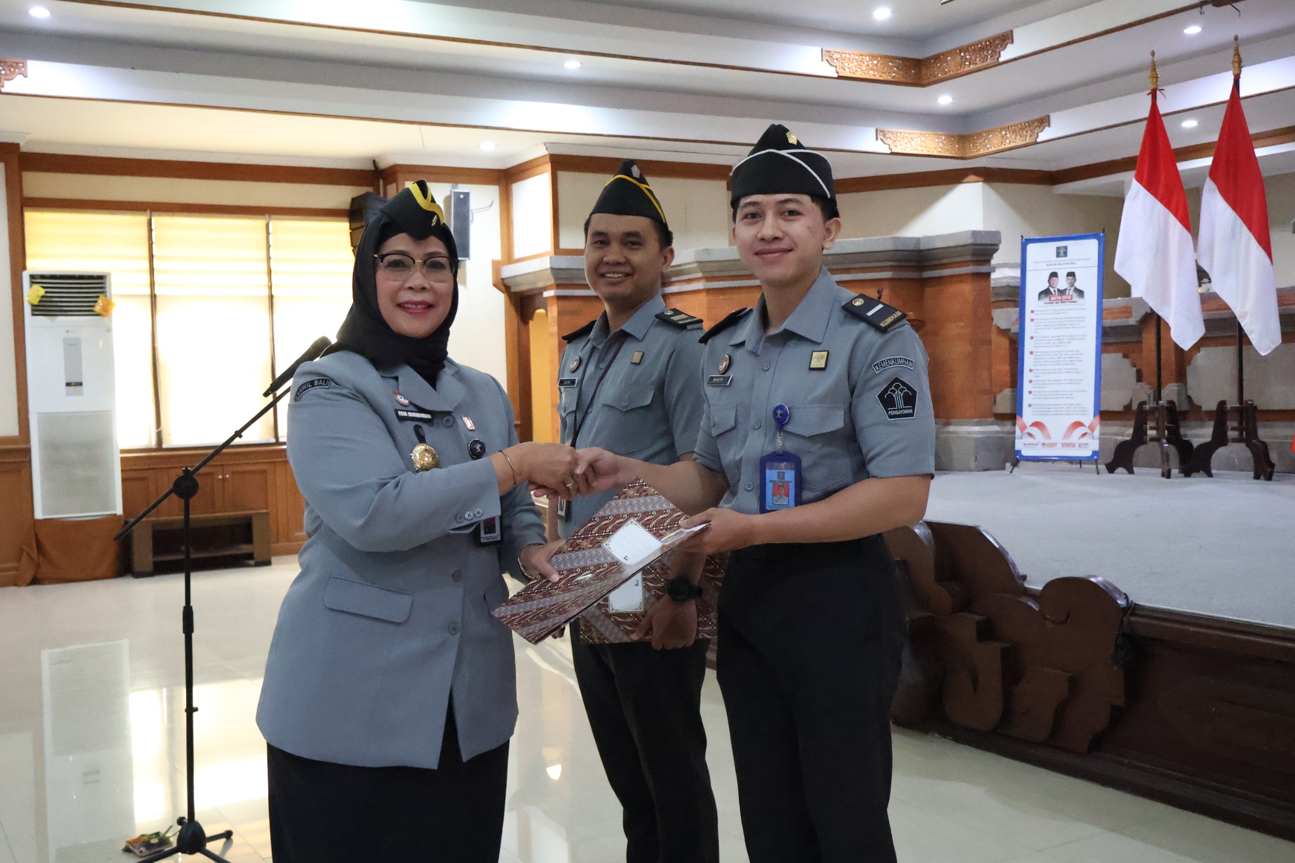 Momen Apel Pagi kali ini semakin istimewa dengan digelarnya Pemberian Reward/Penghargaan kepada pegawai berprestasi. Kakanwil Eem Nurmanah secara langsung menyerahkan penghargaan kepada dua pegawai terbaik periode Triwulan III Tahun 2025.Kedua pegawai yang menerima penghargaan tersebut antara lain, Nengah Jnana Putra, sebagai Pegawai Teladan dan Putu Bhayu Shantiyoga, sebagai Pegawai Pemberi Layanan Terbaik.