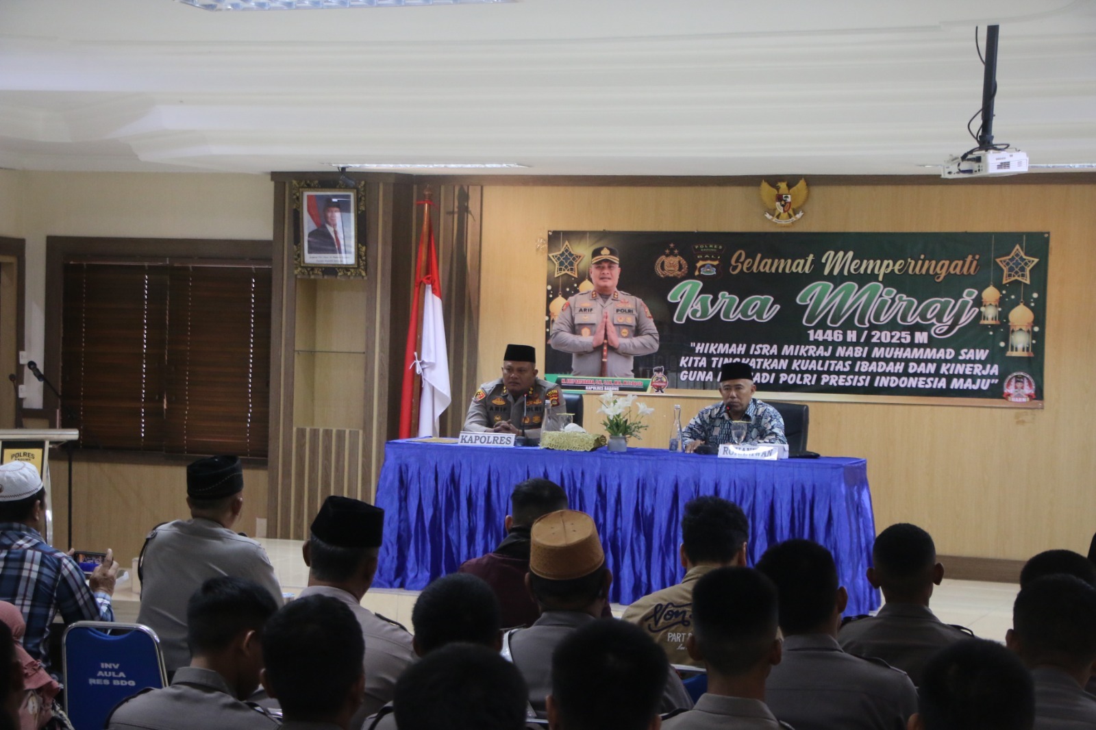 Drs. K.H. Yunus Anies, S.H. selaku rohaniawan muslim menjelaskan bahwa tujuan dari Peringatan Isra’ Mi’raj Nabi Muhammad SAW diperingati setiap tahun adalah menjadikan sosok Nabi Muhammad SAW sebagai suri tauladan bagi umat Islam dalam menjalani segala aktifitas kehidupan sehari-hari. Kaitannya dengan pelaksanaan tugas Polri Presisi dalam mengawal Indonesia Maju dianjurkan anggota Polri untuk meningkatkan ibadah dengan maksud dan tujuan mengharapkan ridha Allah SWT sehingga kita mendapatkan kemudahan-kemudahan dalam menjalankan tugas sebagai anggota Polri.