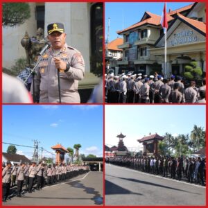 Amankan Perayaan Suci, Kapolres Badung Pimpin Apel Siaga Jelang Rahina Galungan TNI dan Polri|April 22, 2025by Locus DelictiNews Mangupura,Locusdelictinews| Menjelang perayaan suci Rahina Galungan, Kepolisian Resor (Polres) Badung menggelar apel siaga